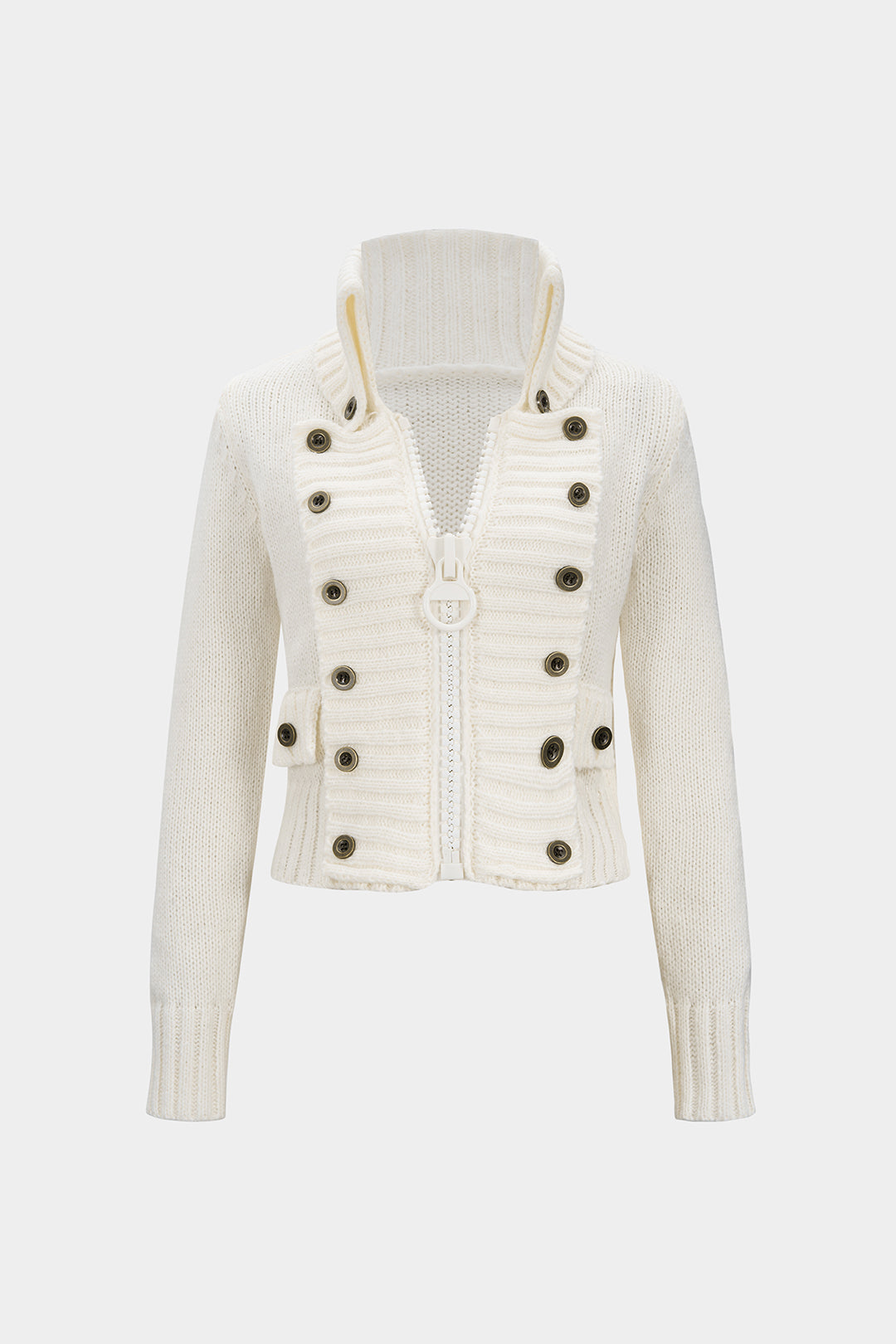 Knit Double Breasted Zipper Cardigan