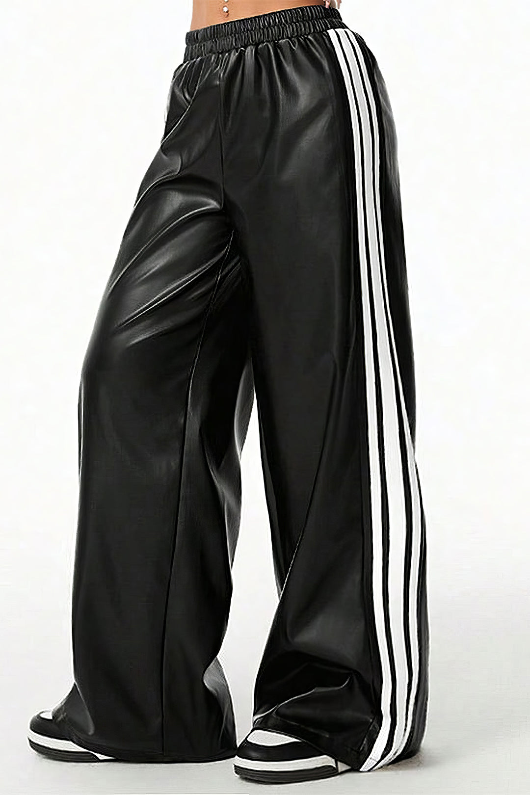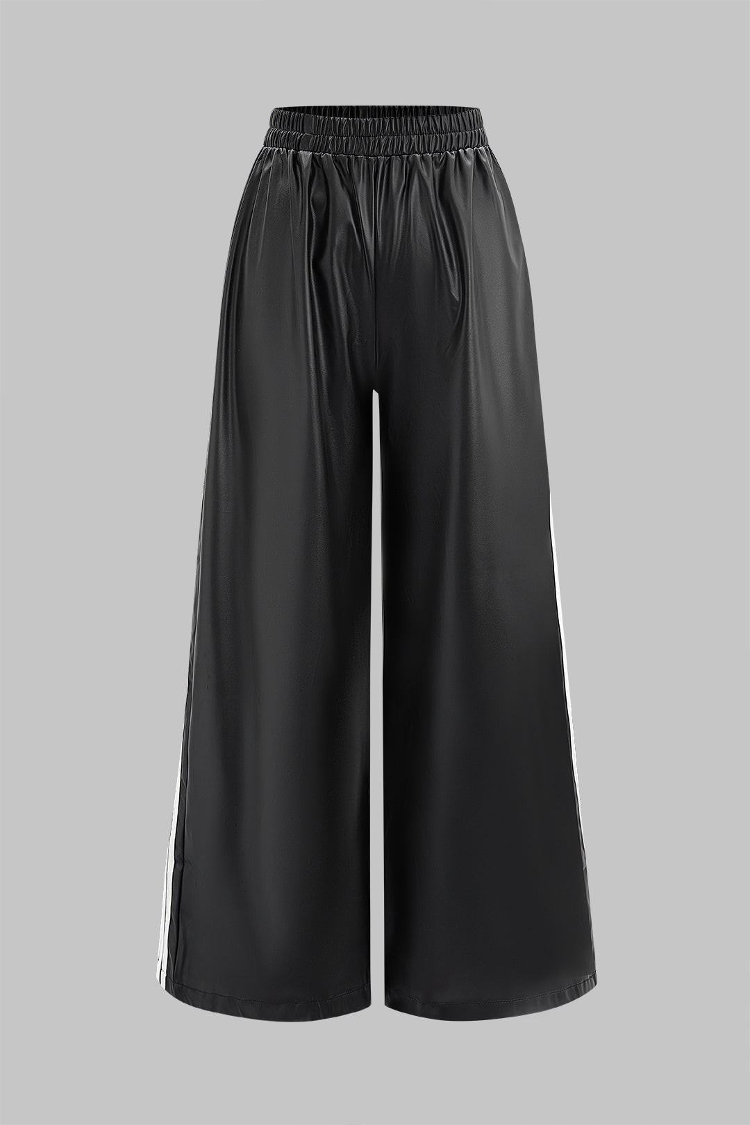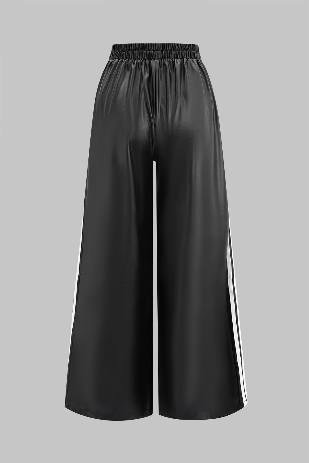 Faux Leather Contrast Shirred Waistband Wide Leg Pants