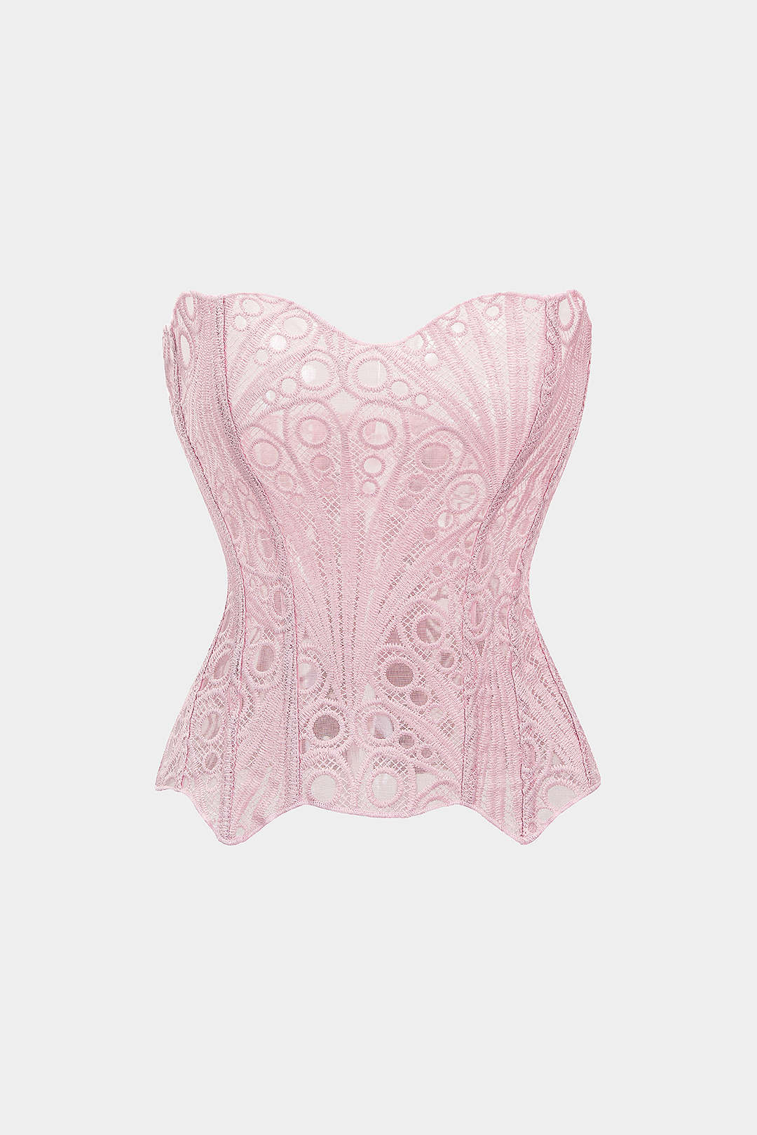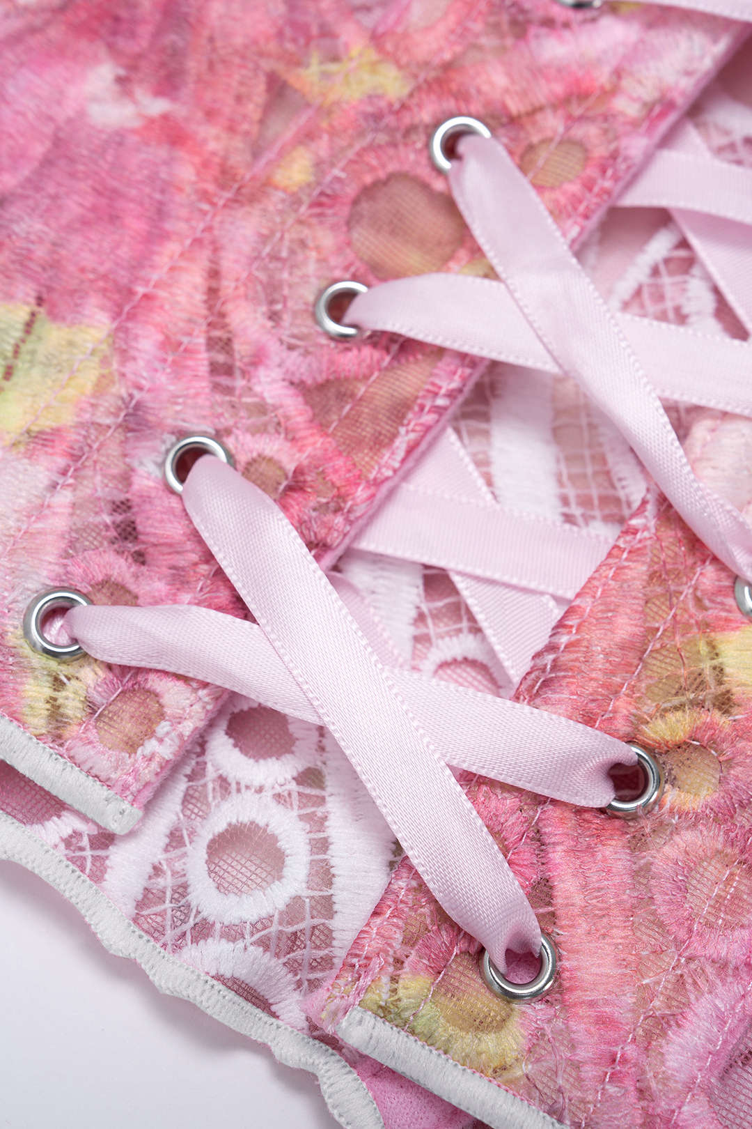 Floral Print Jacquard Patchwork Textured Tie Back Tube Top