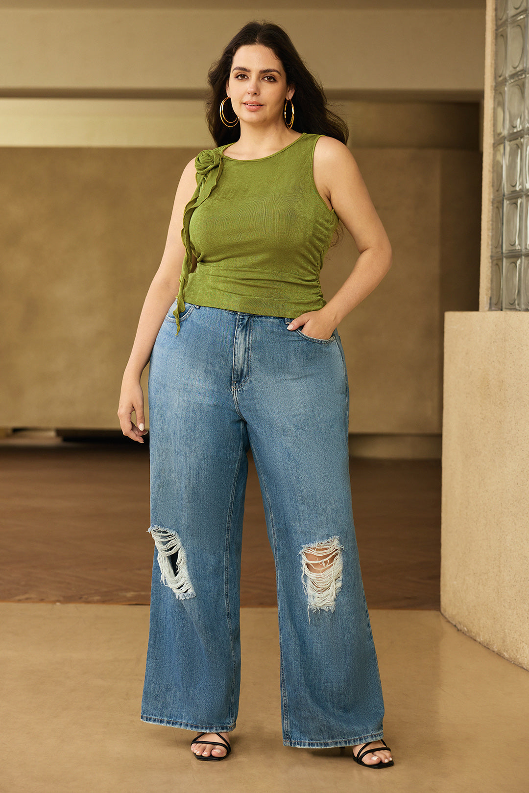 Plus Size 3D Floral Ruched Ruffle Tank Top
