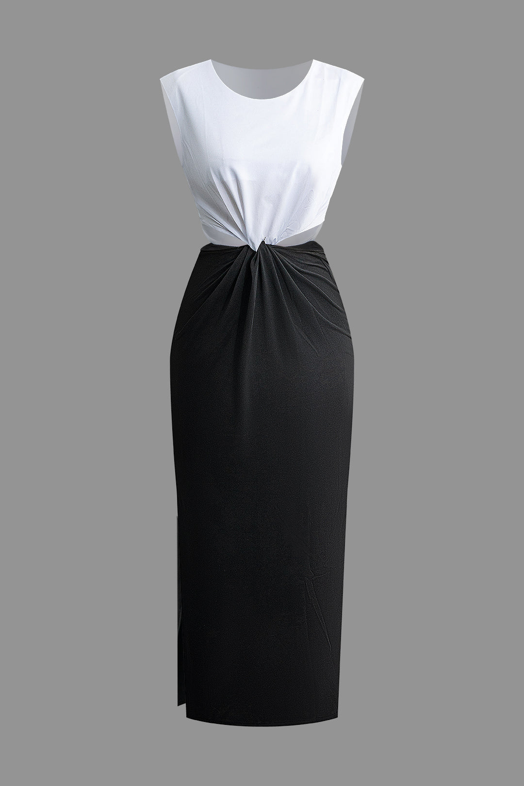 Contrast Cut Out Twist Knot Sleeveless Midi Dress