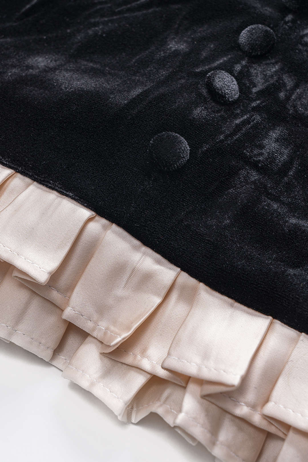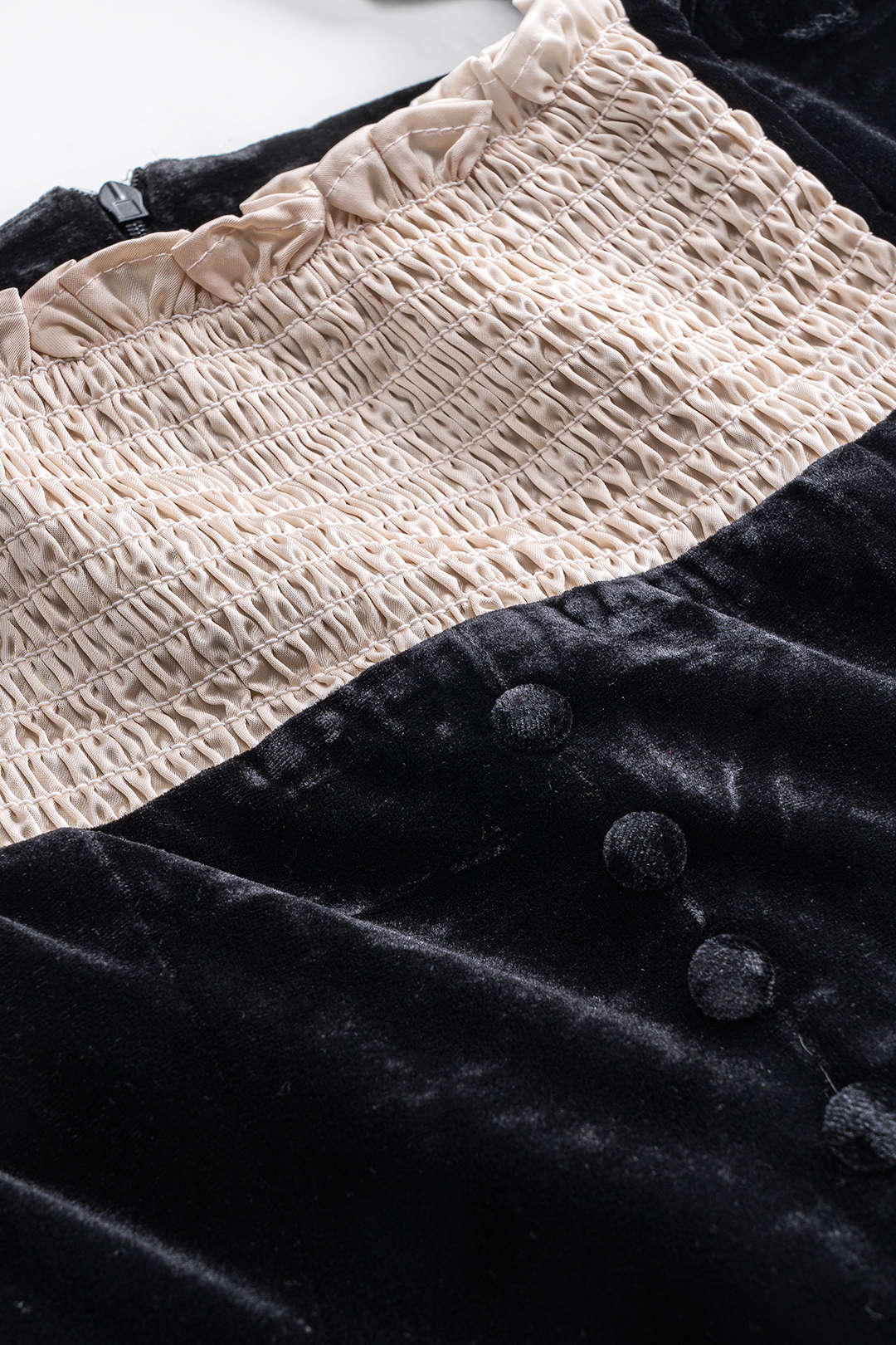 Velvet Patchwork Button Zipper Long Sleeve Mini Dress