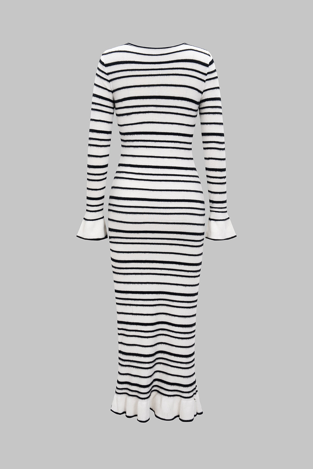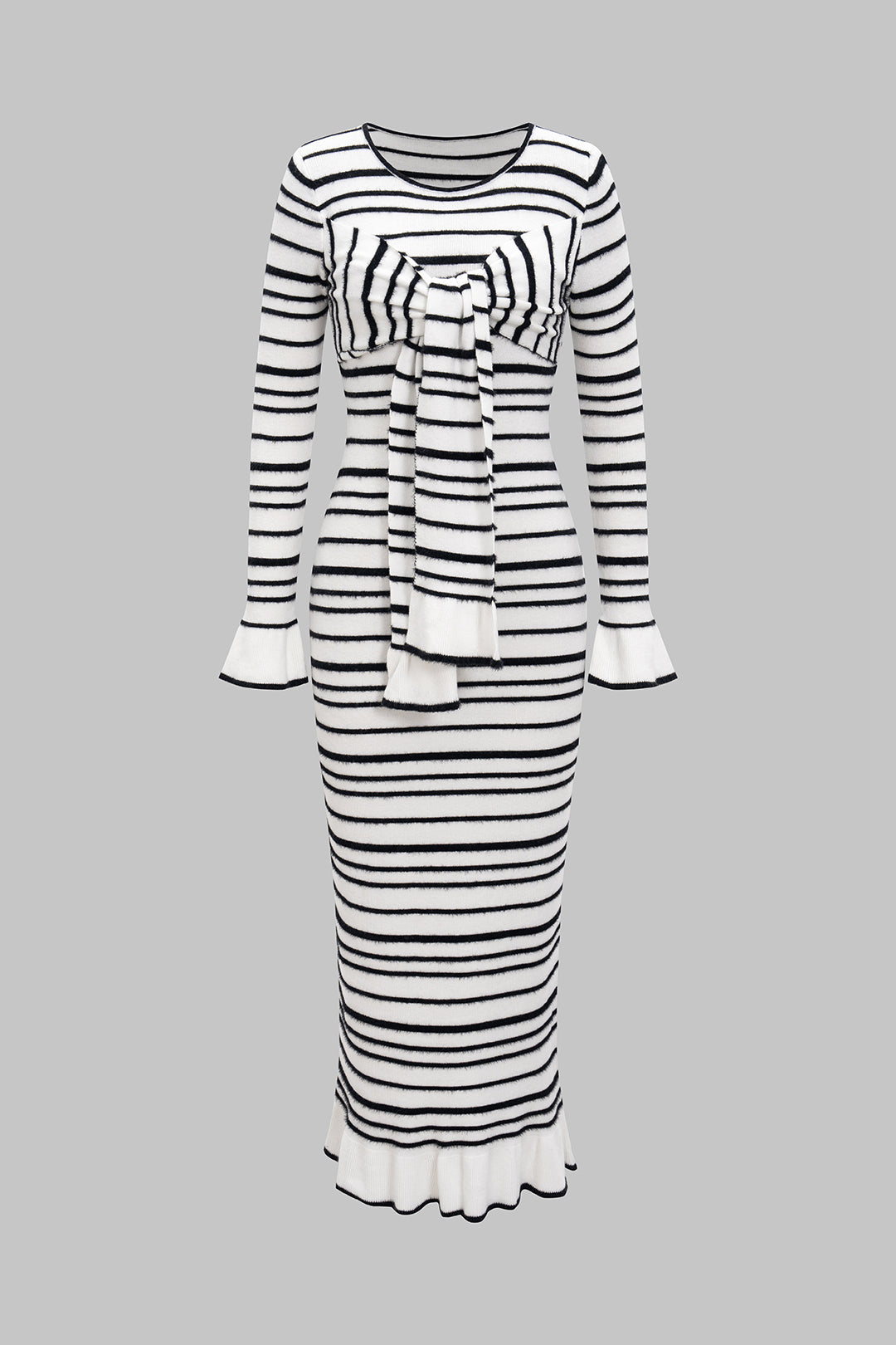 Knit Contrast Strappy Bell Long Sleeve Dress