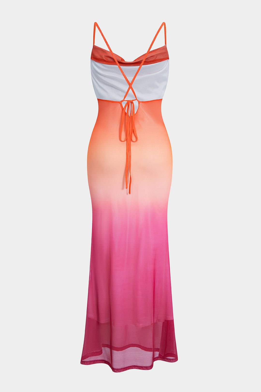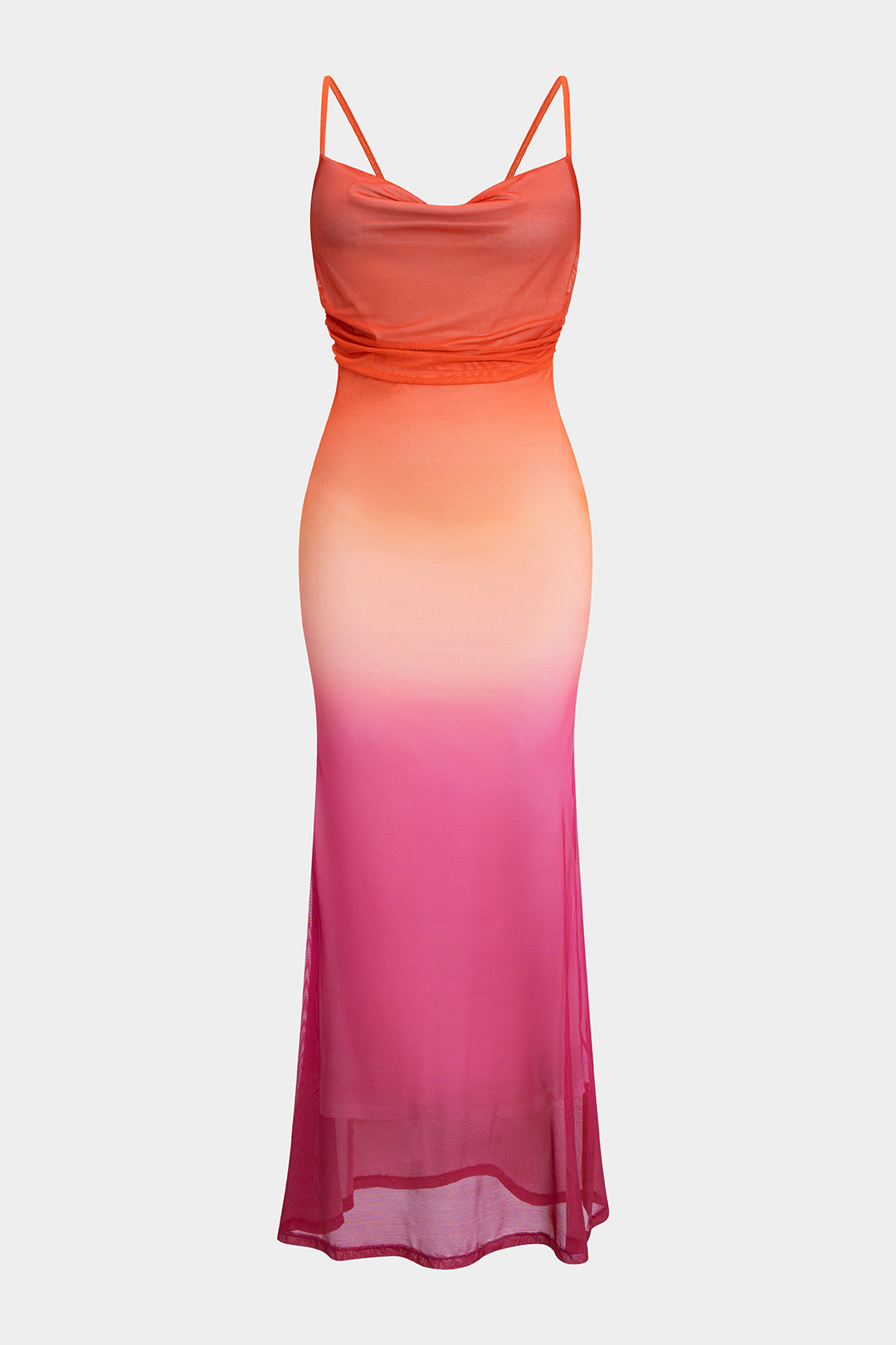 Ombre Print Mesh Ruched Tie Back Slip Maxi Dress