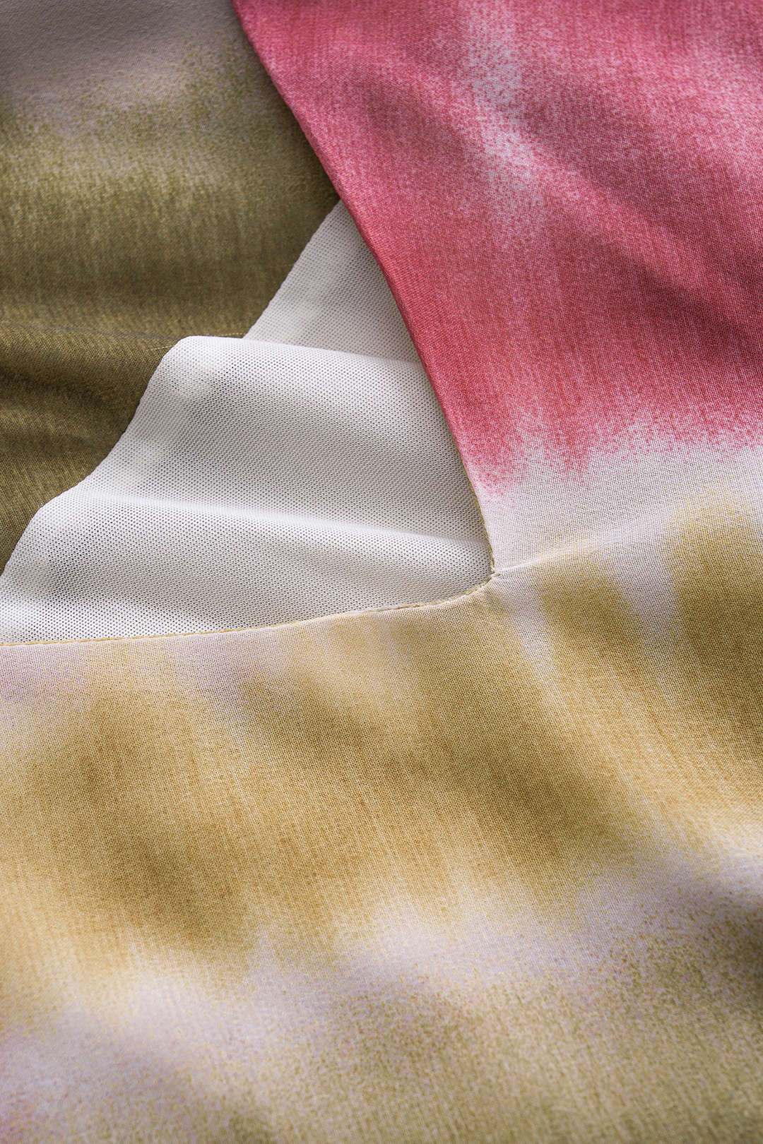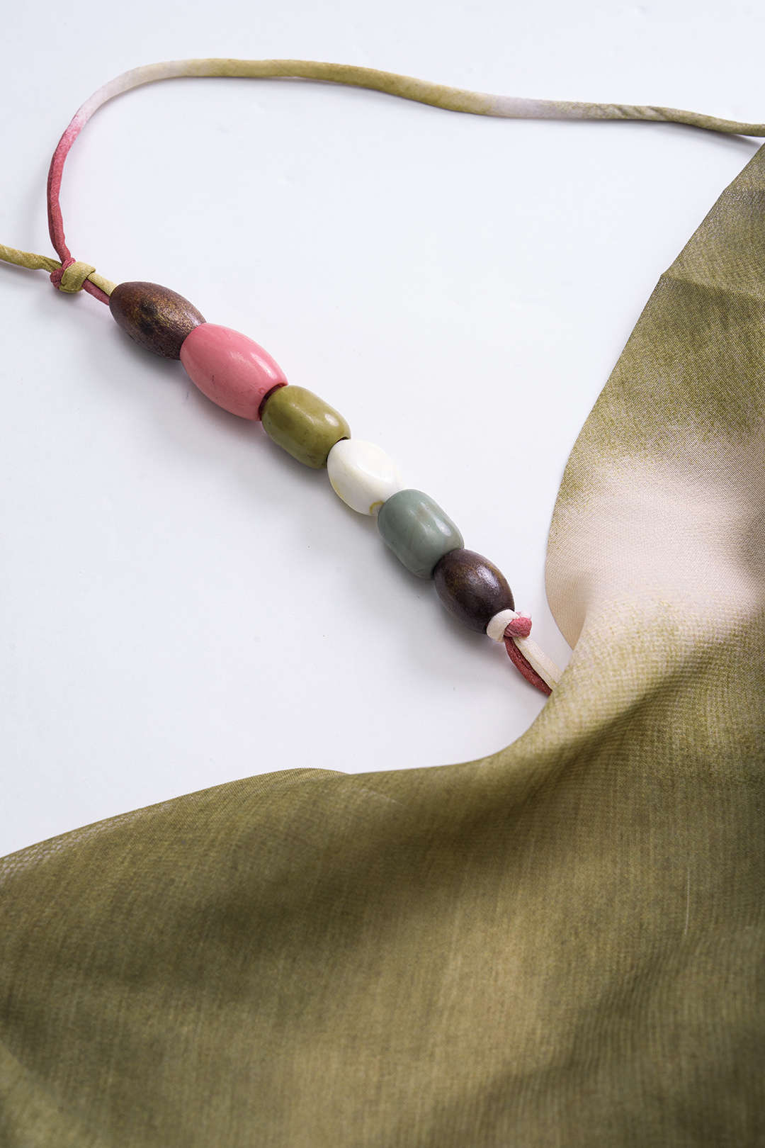 Tie Dye Ombre Print Satin Beaded Slip Cowl Neck Maxi Dress