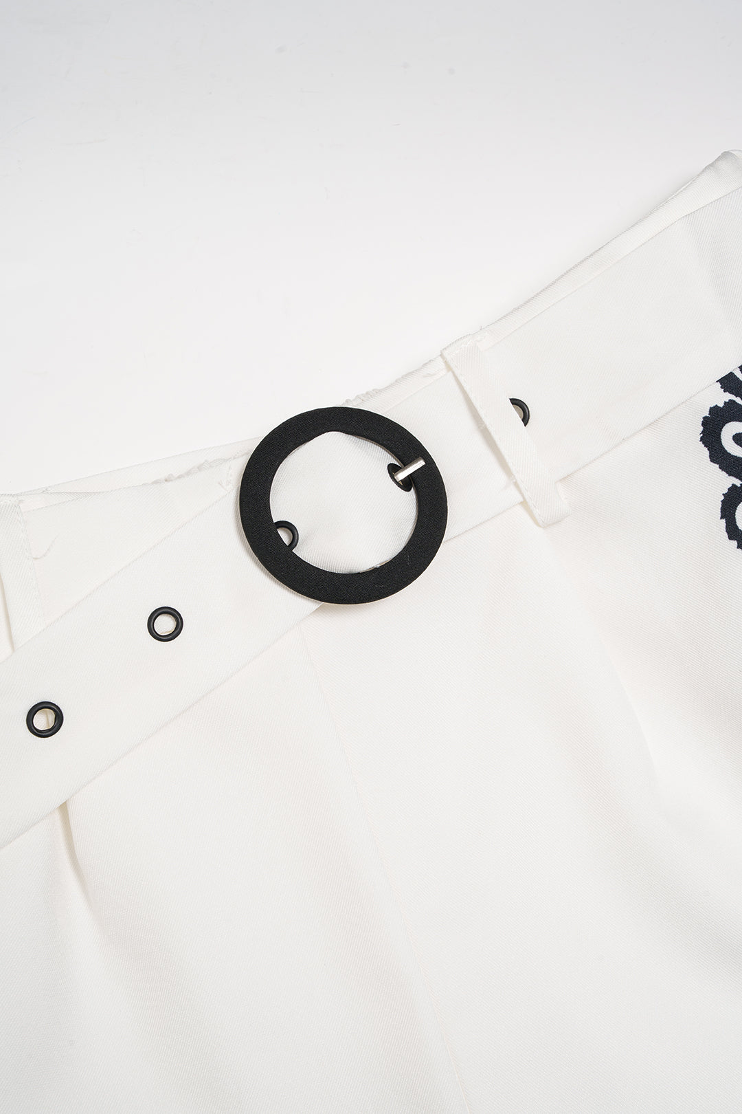 Contrast Print Button Short Sleeve Shirt And Belted Shorts Set