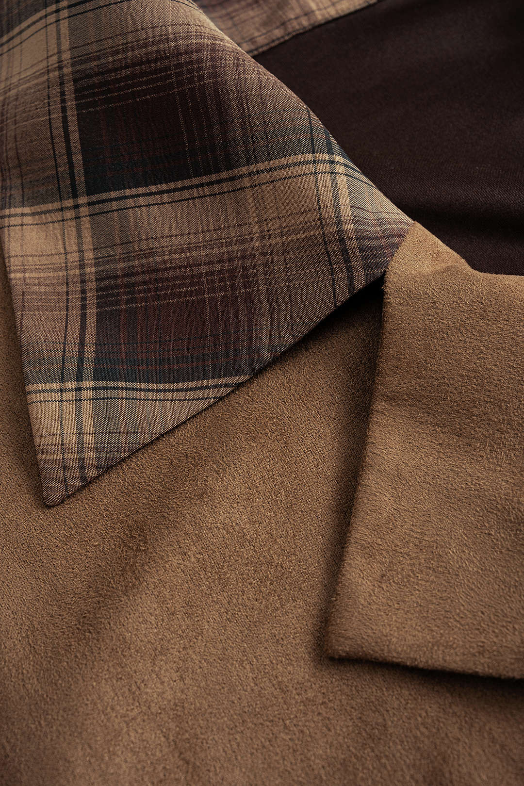 Suede Patchwork Notched Lapel Long-Sleeve Top