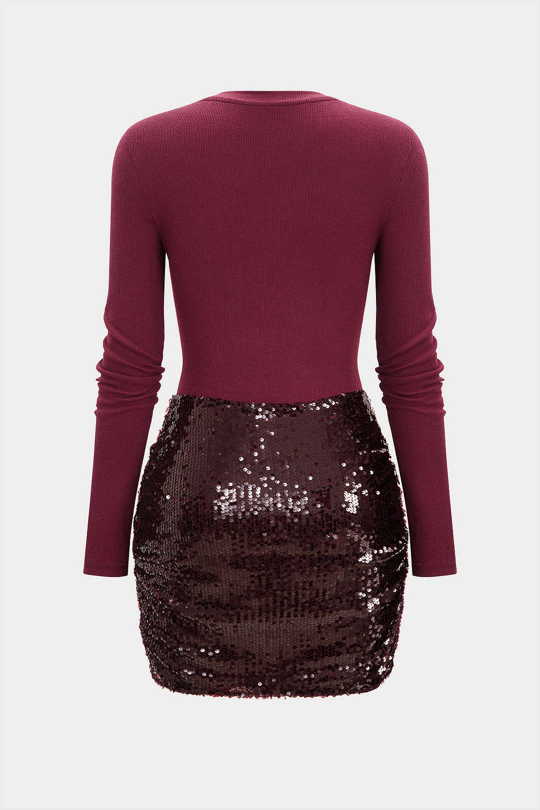 Sequin Patchwork Round Neck Knotted Long Sleeve Mini Dress
