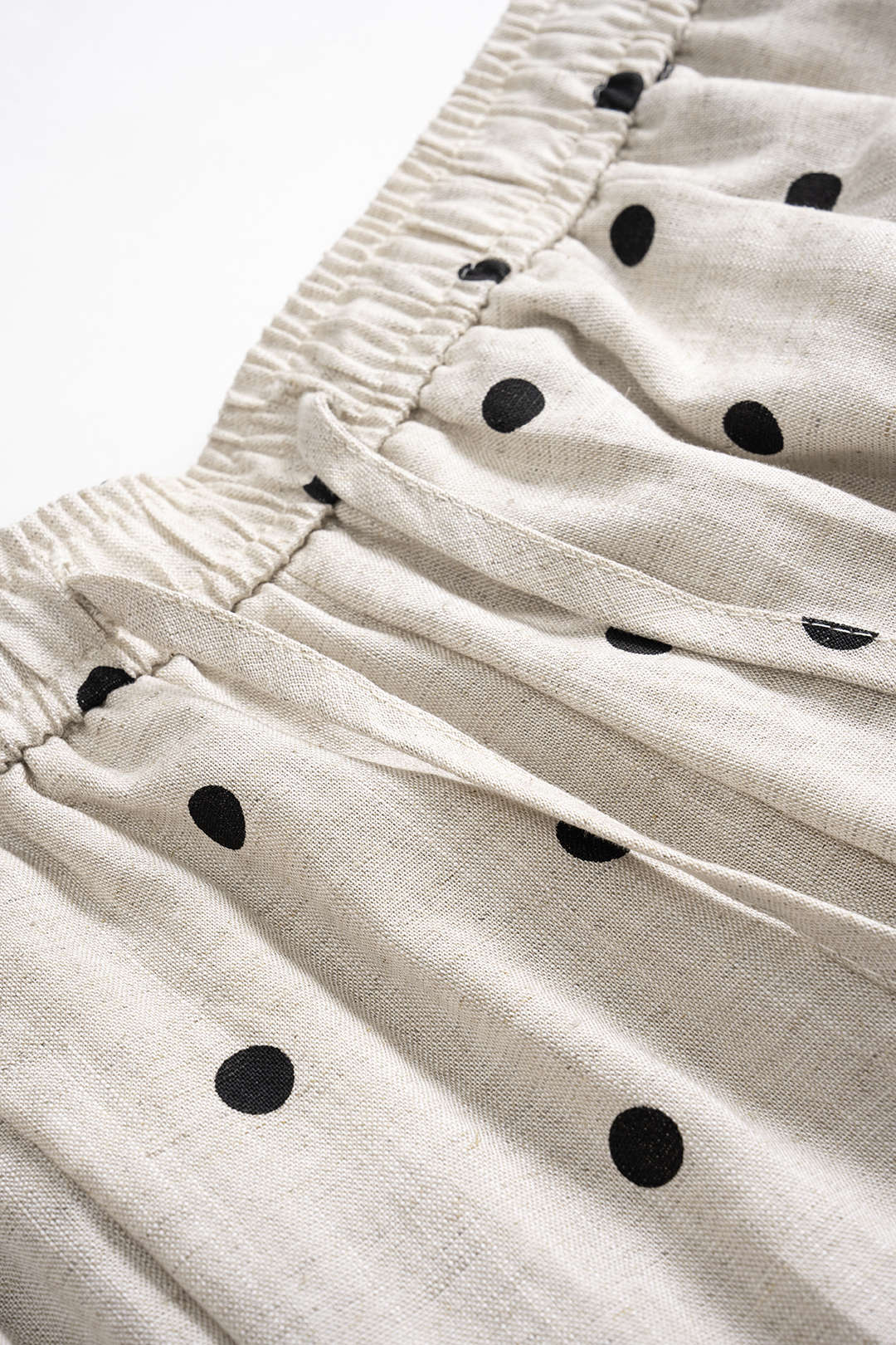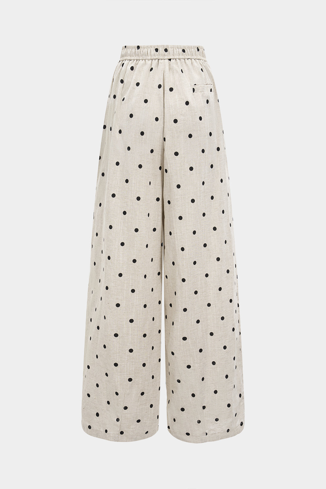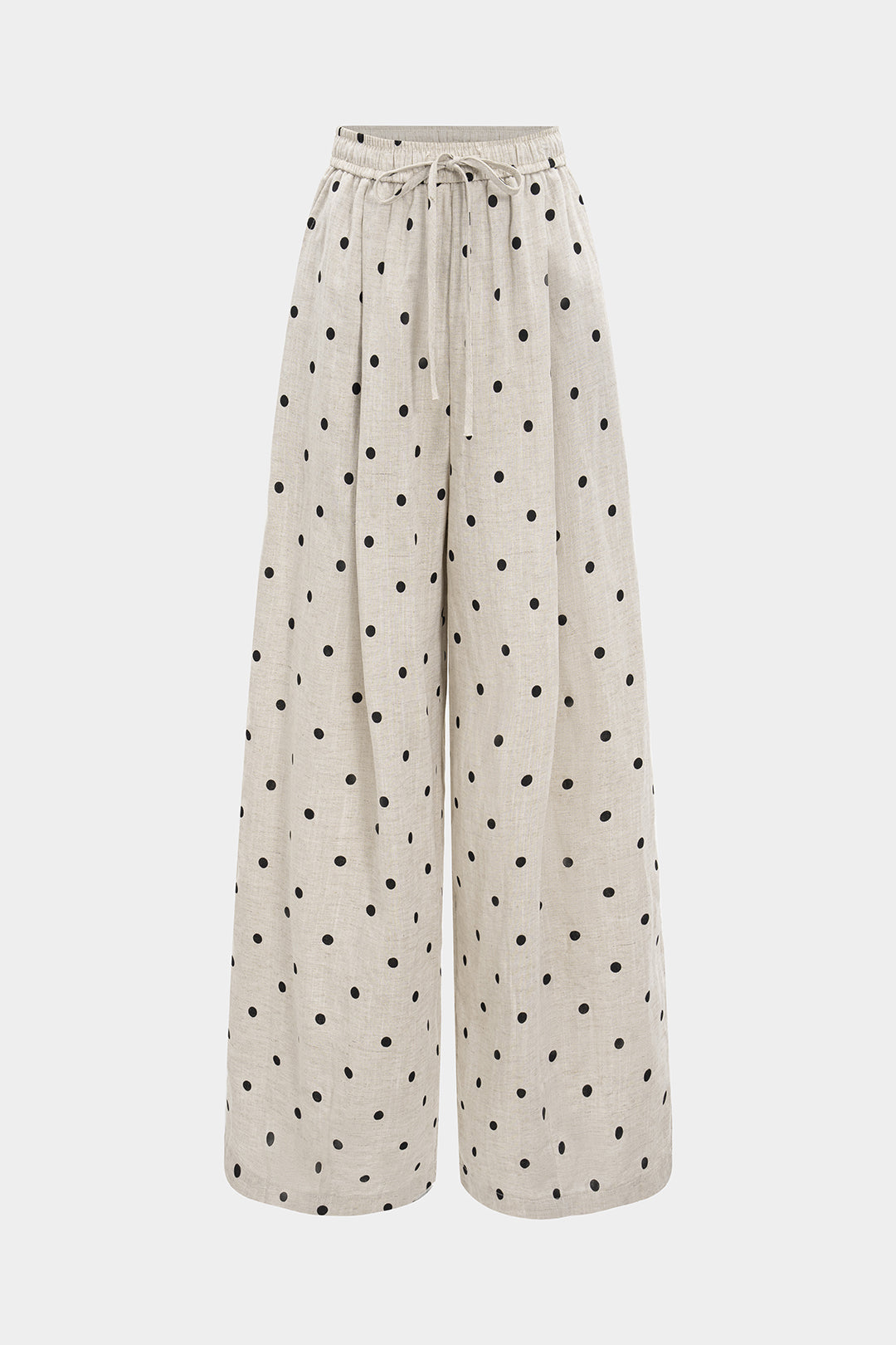 Polka Dots Print Linen Drawstring Wide Leg Trousers