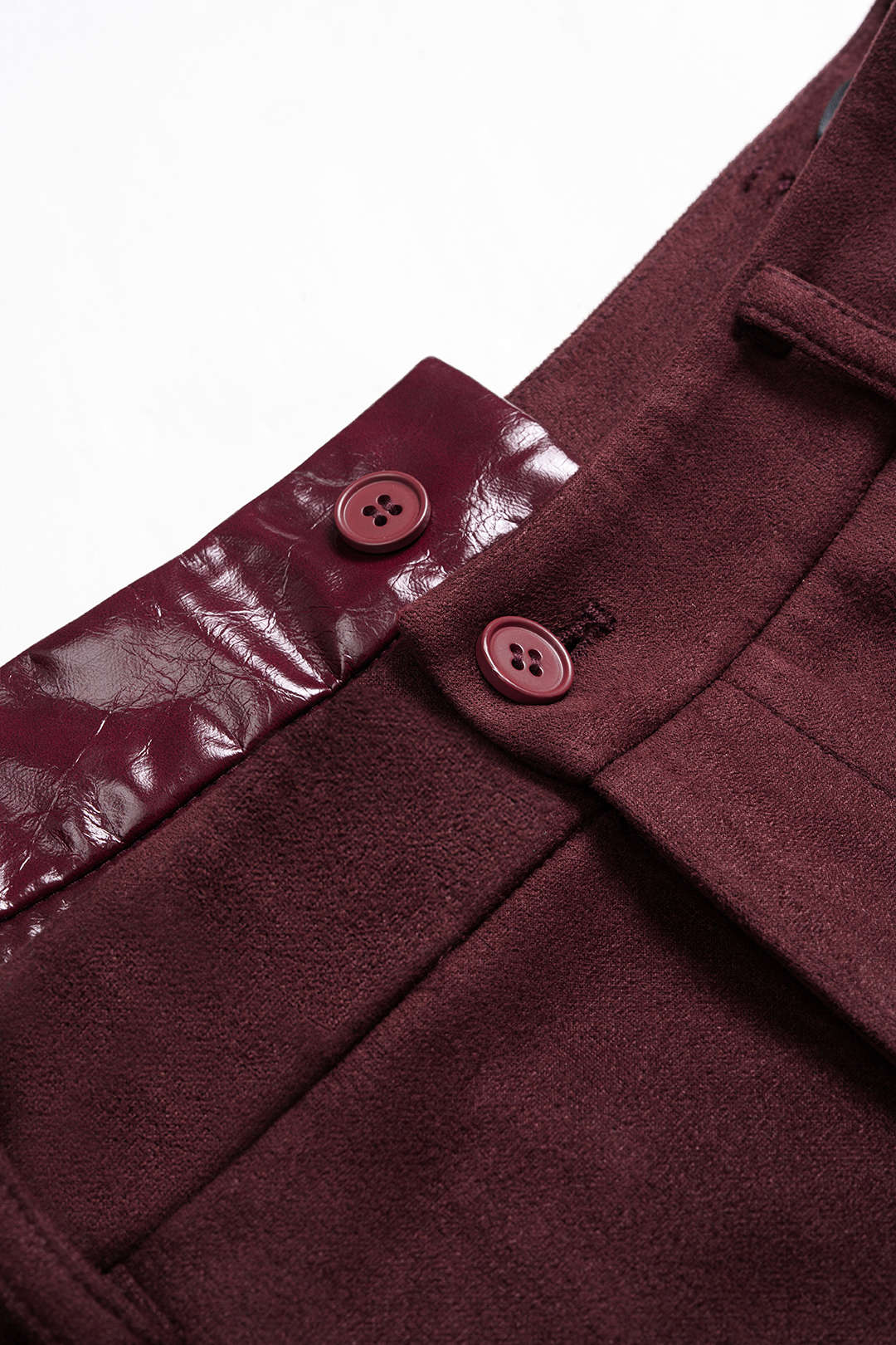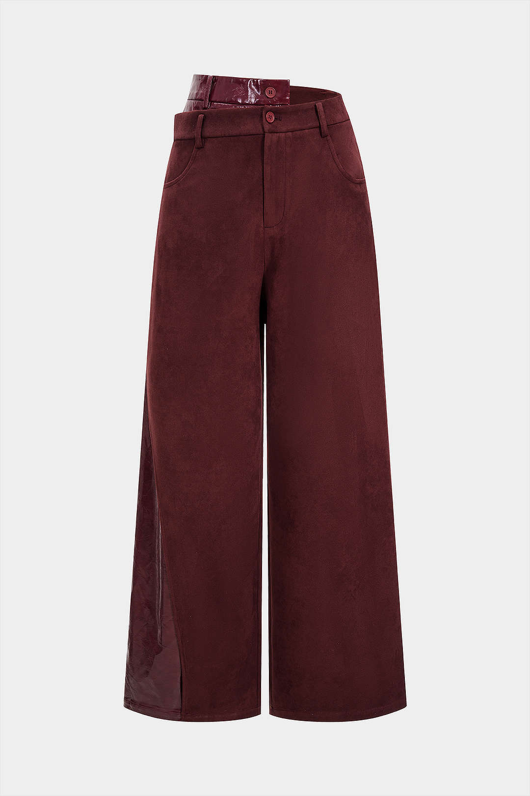 Faux Leather Suede Patchwork High Waist Asymmetrical Pants