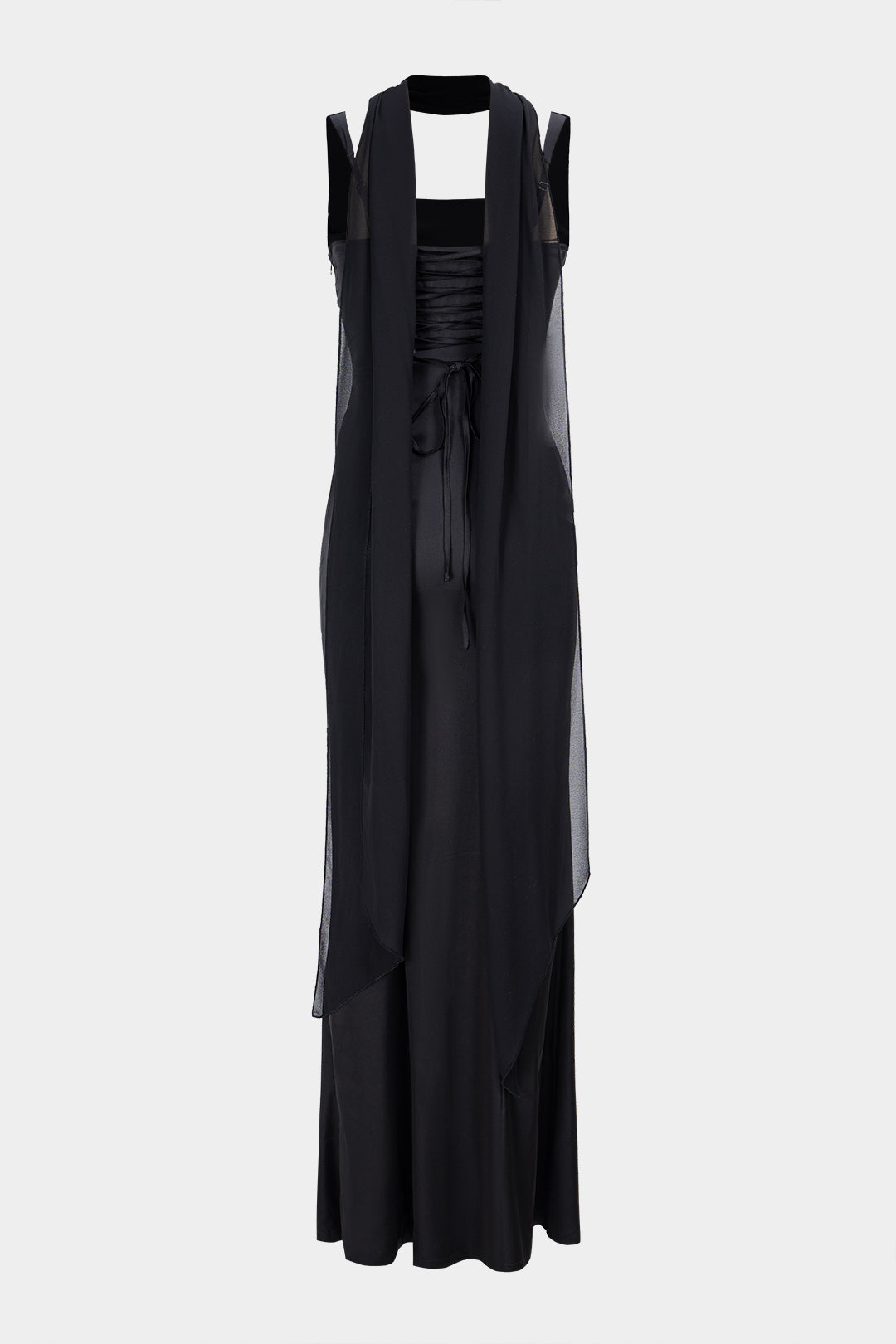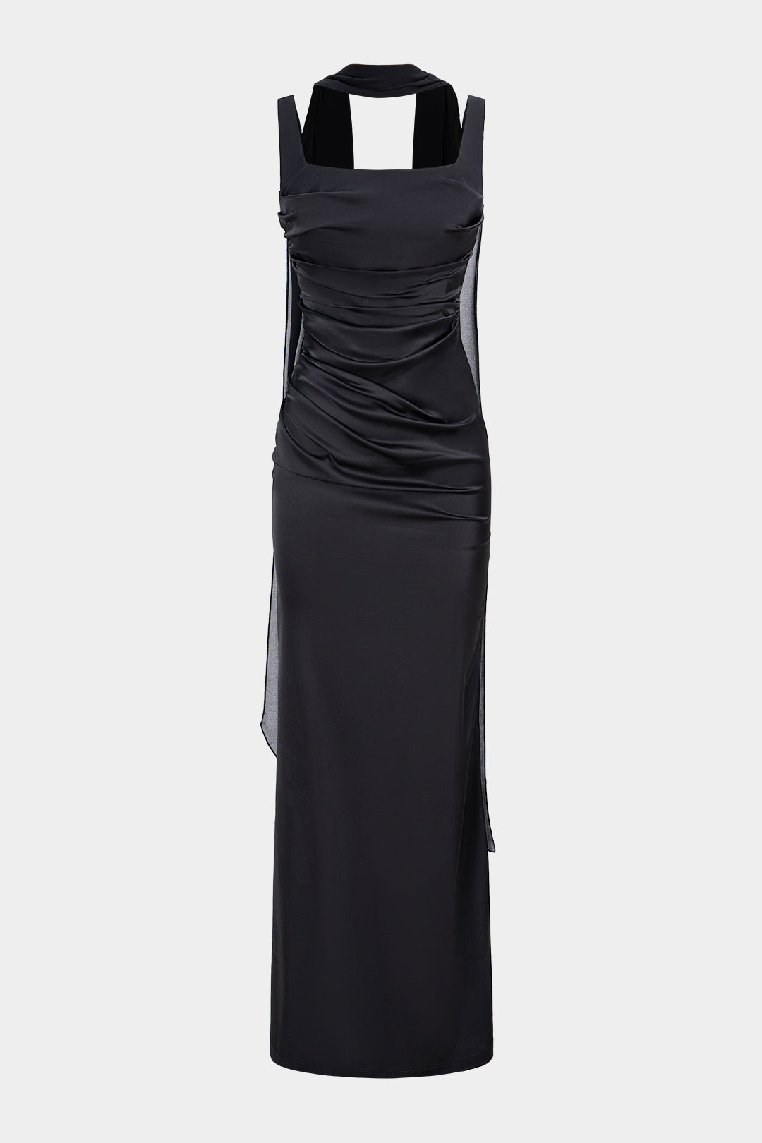 Satin Halter Neck Ruched Sleeveless Maxi Dress
