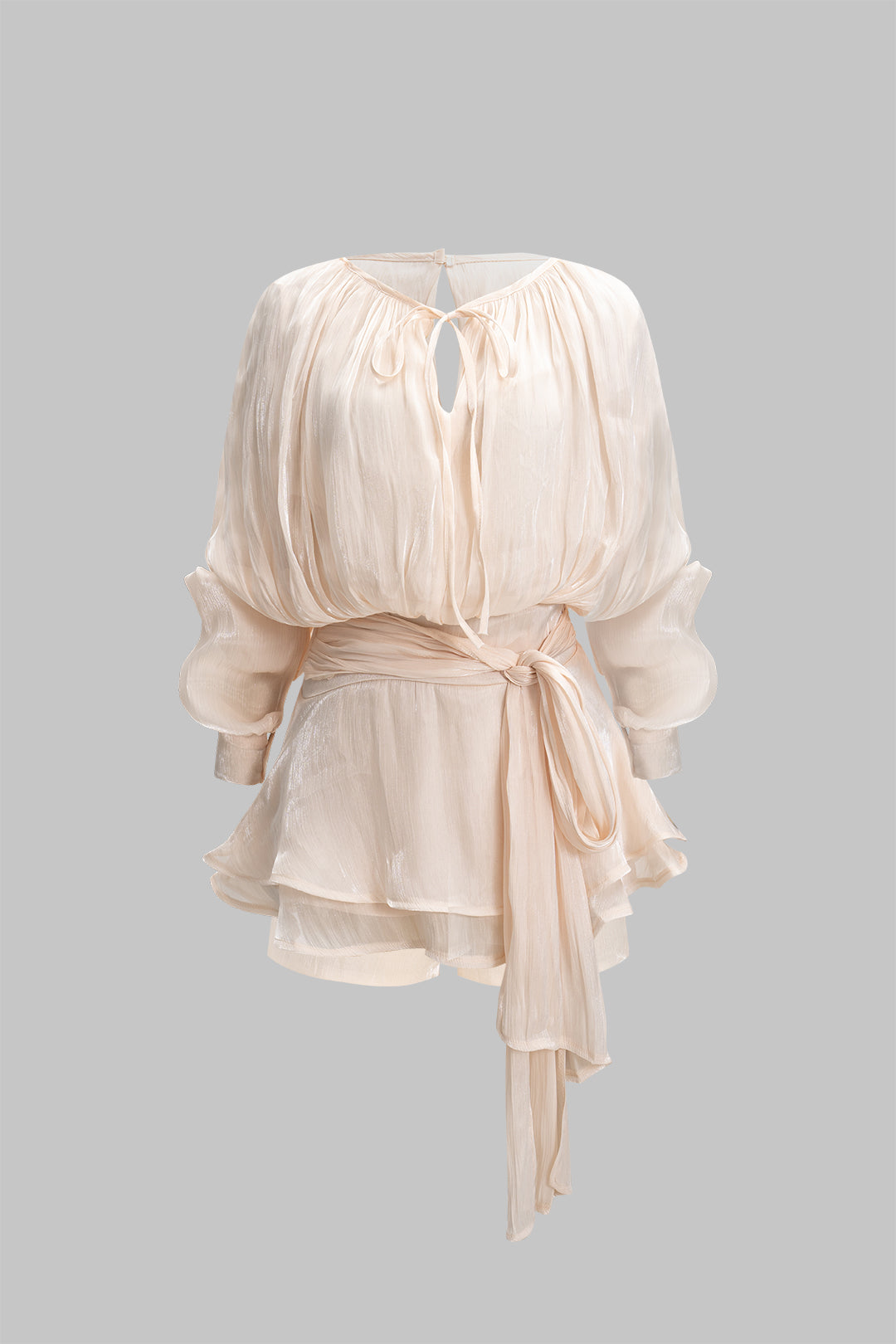 Chiffon Ruched Ruffle Long Sleeve Mini Dress