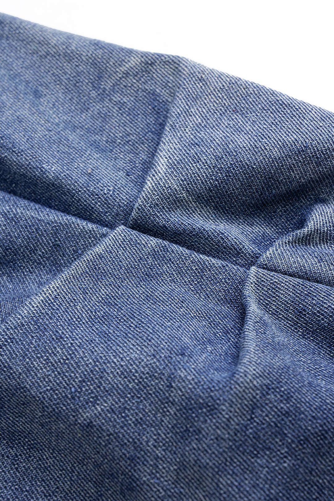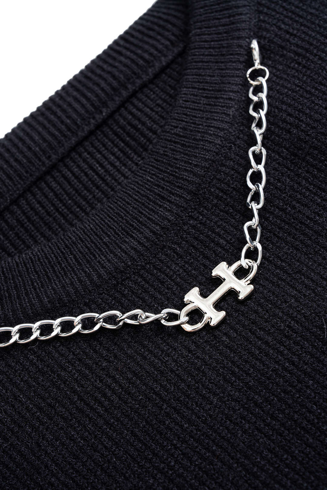 Knit Denim Patchwork Chain Decor Ruched Long-Sleeve Top