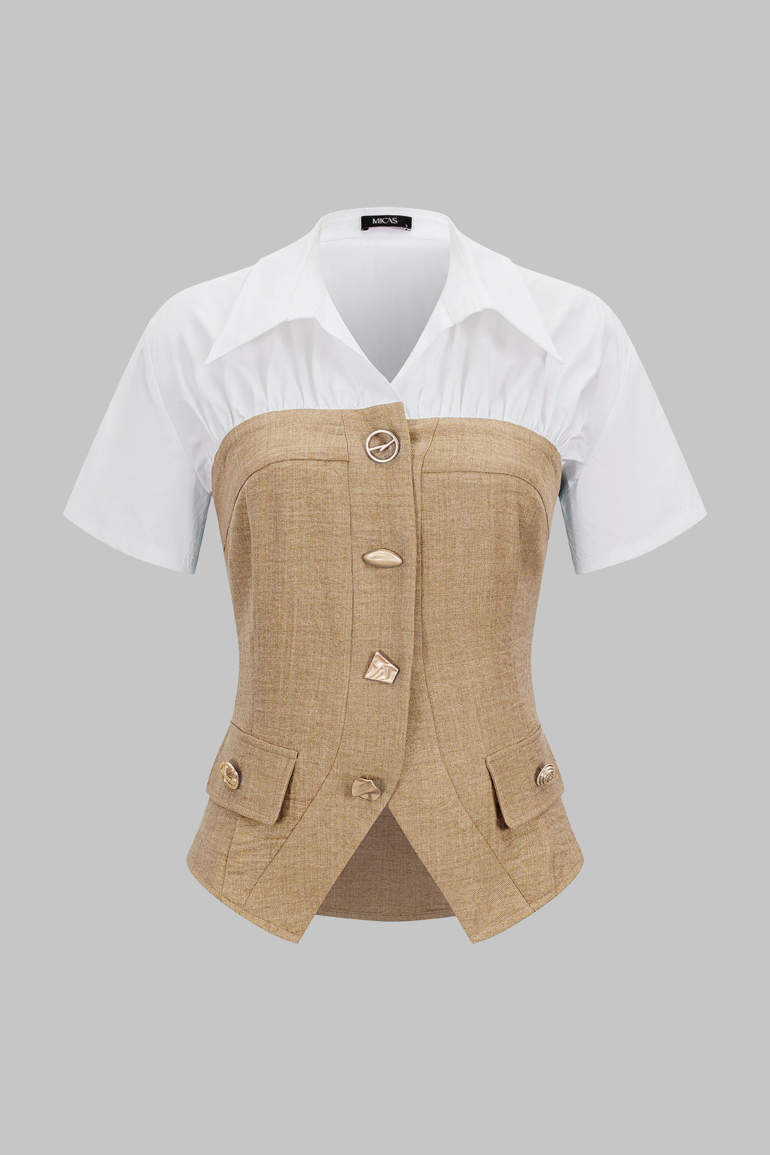 Contrast Irregular Button Lapel Short Sleeve Top