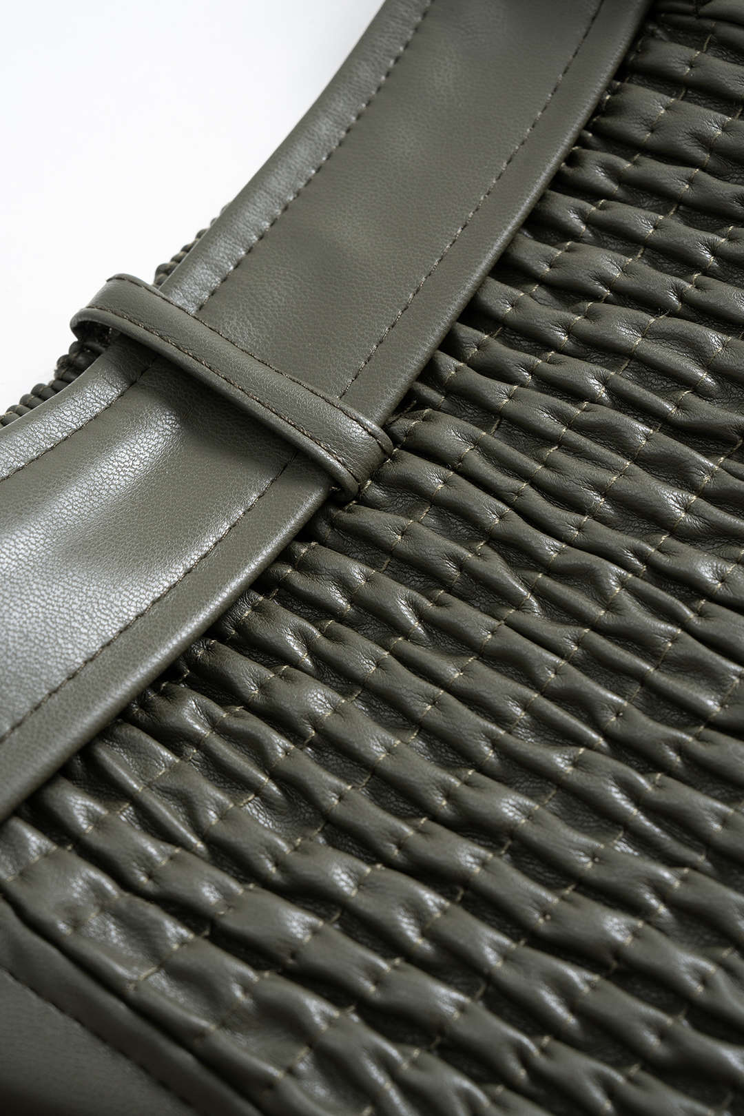 Faux Leather Smocked Strapless Belted Zipper Tube Top