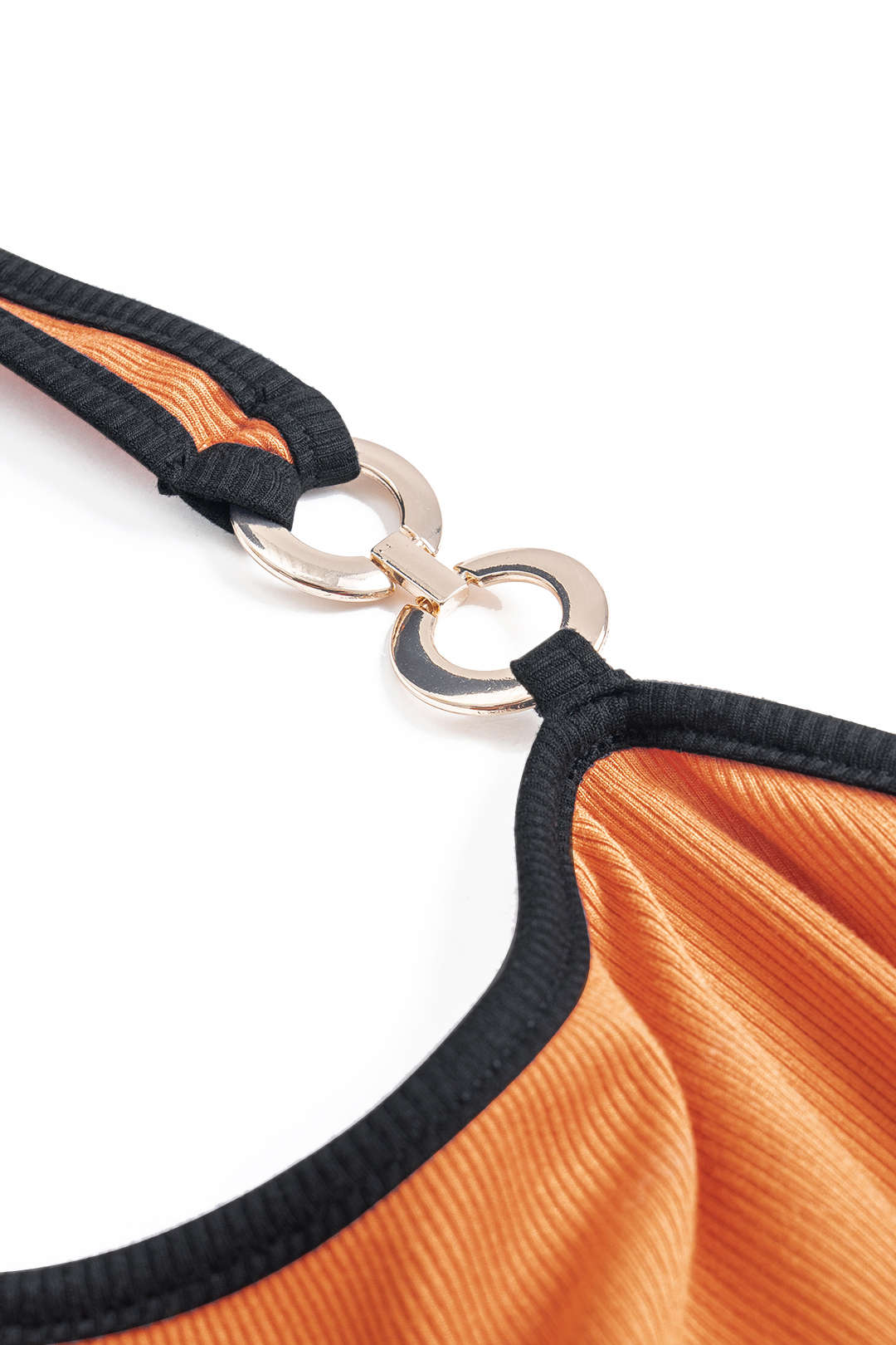 Halter Neck Contrast Binding Metallic Decor Sleeveless Mini Dress