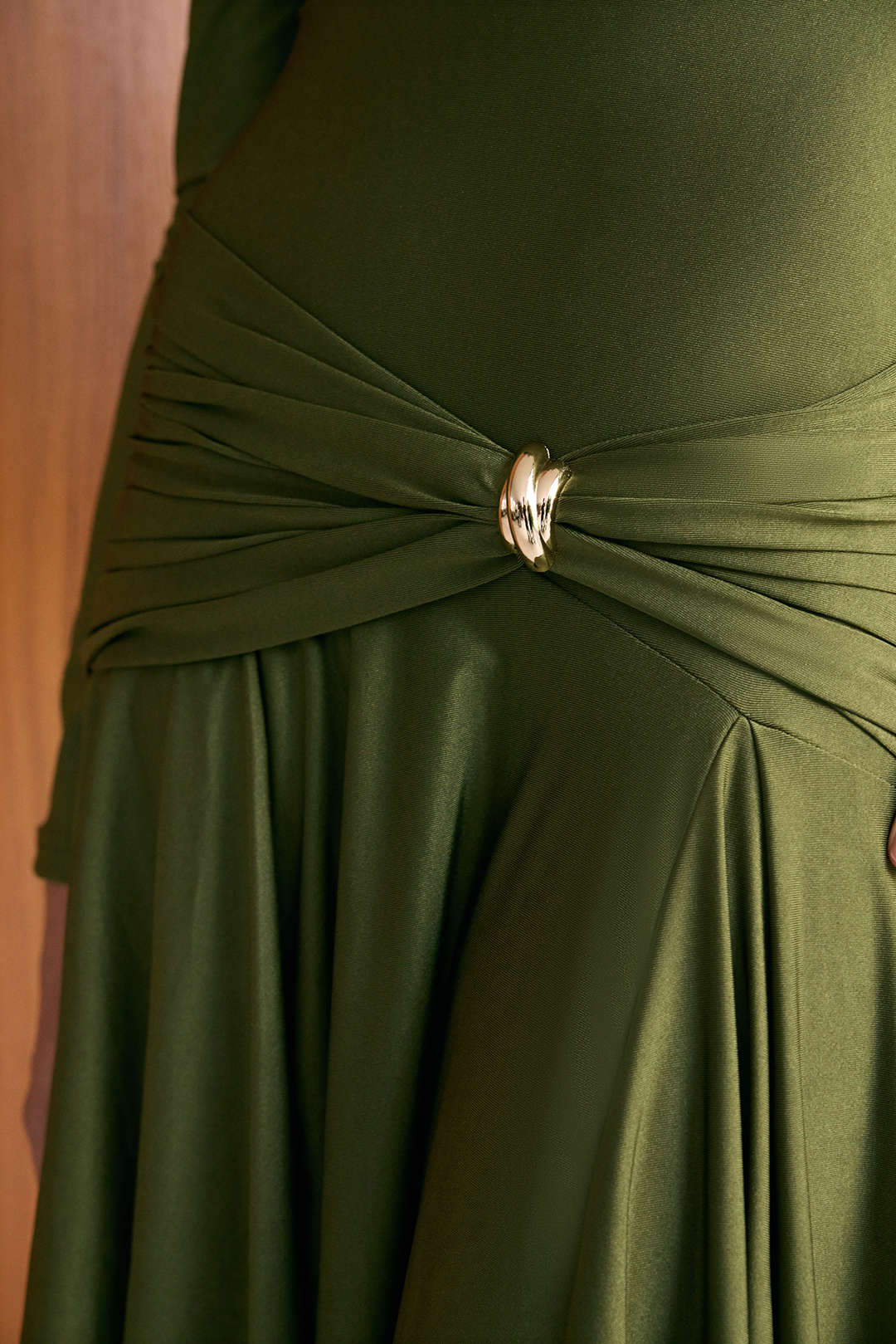 Metallic Ruched Asymmetrical Irregular Hem Long Sleeve Midi Dress