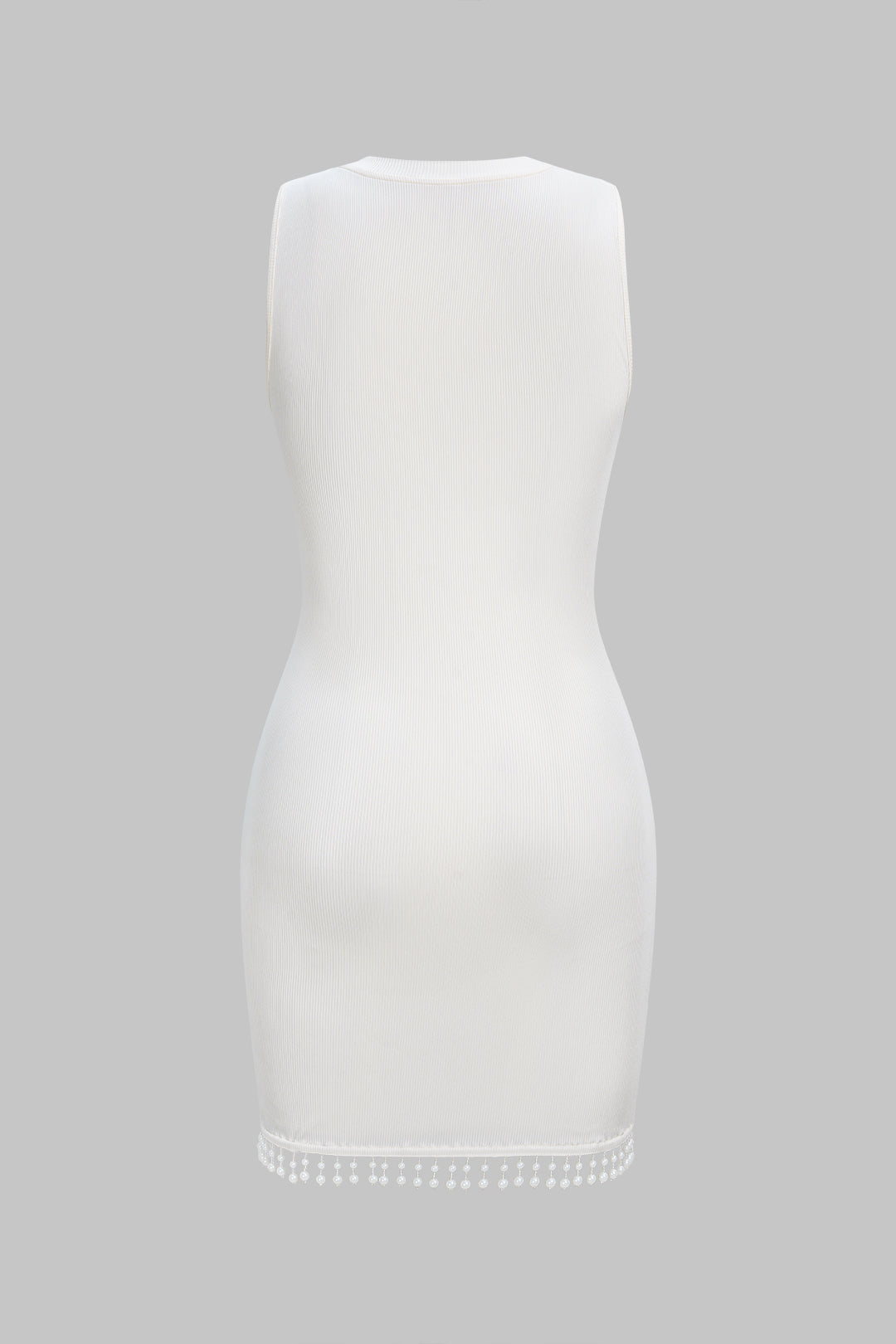 Pearl Fringe Trim Tank Sleeveless Mini Dress