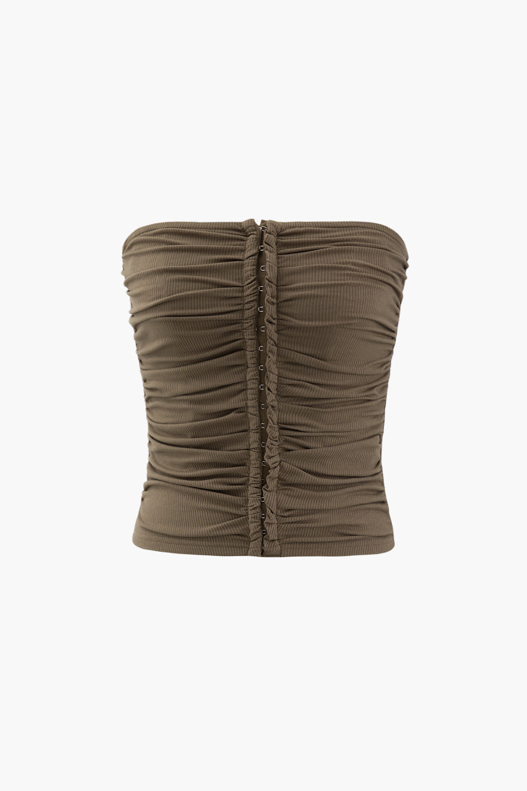 Solid Ruched Button Strapless Tube Top