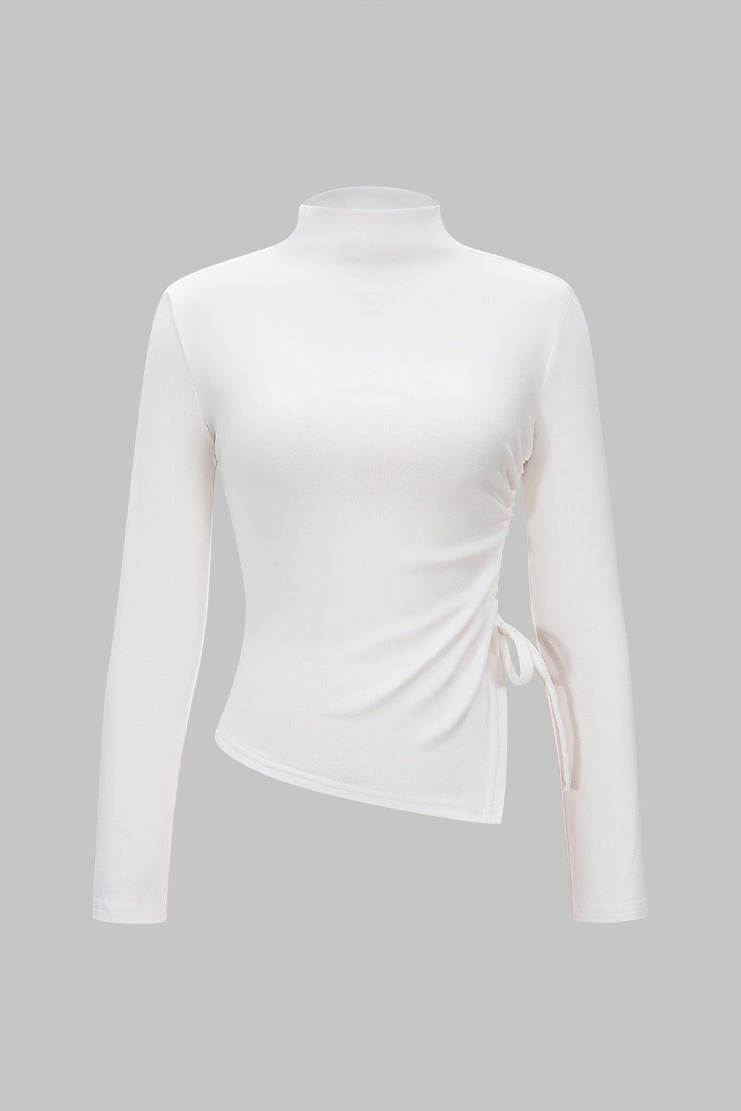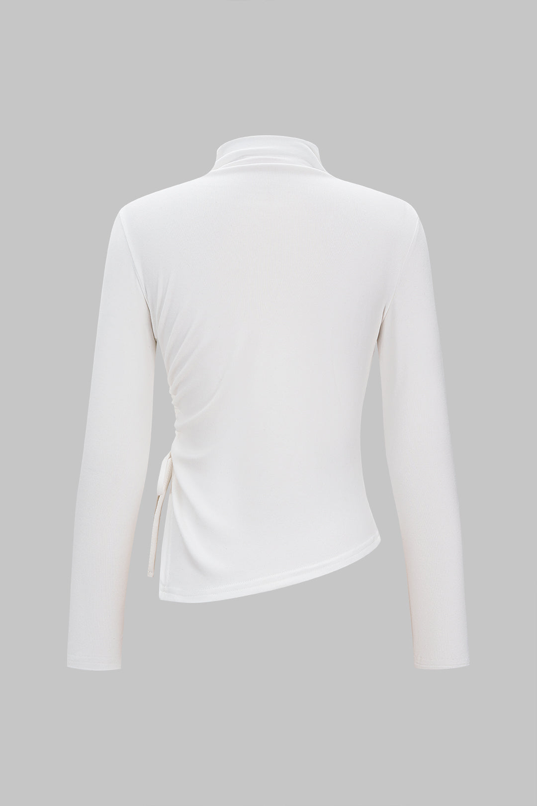 Mock Neck Drawstring Ruched Asymmetrical Long-Sleeve Top