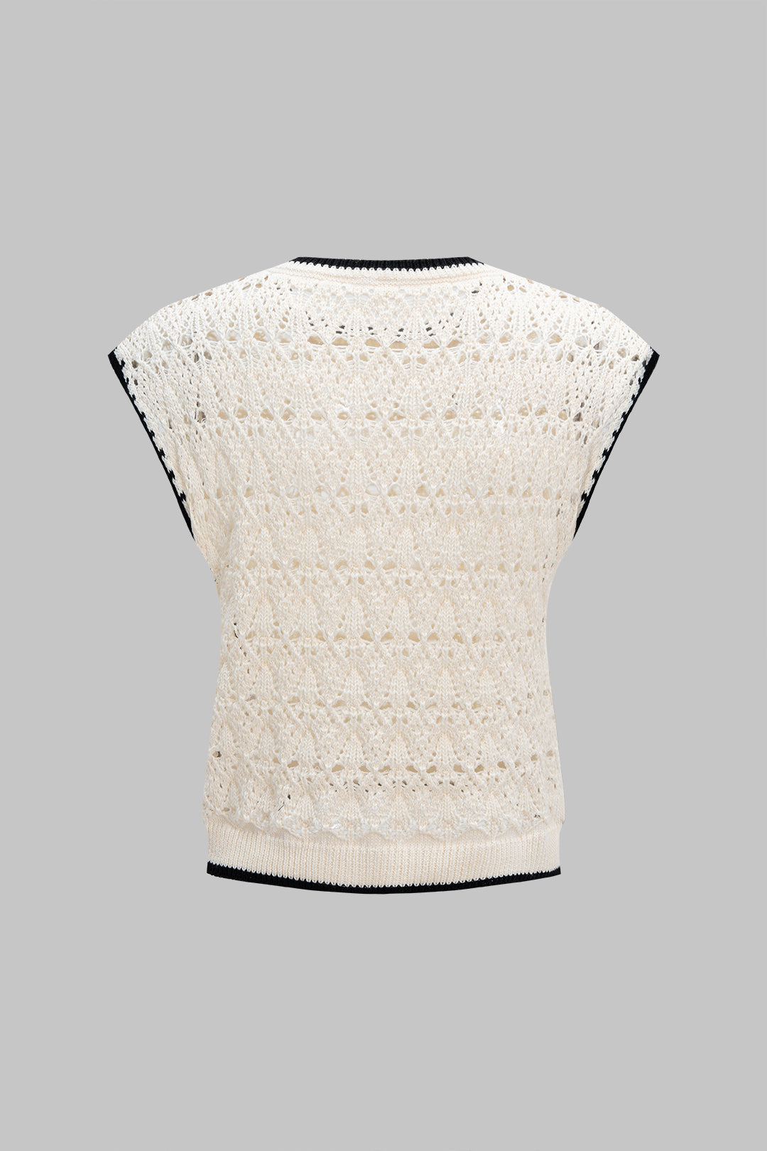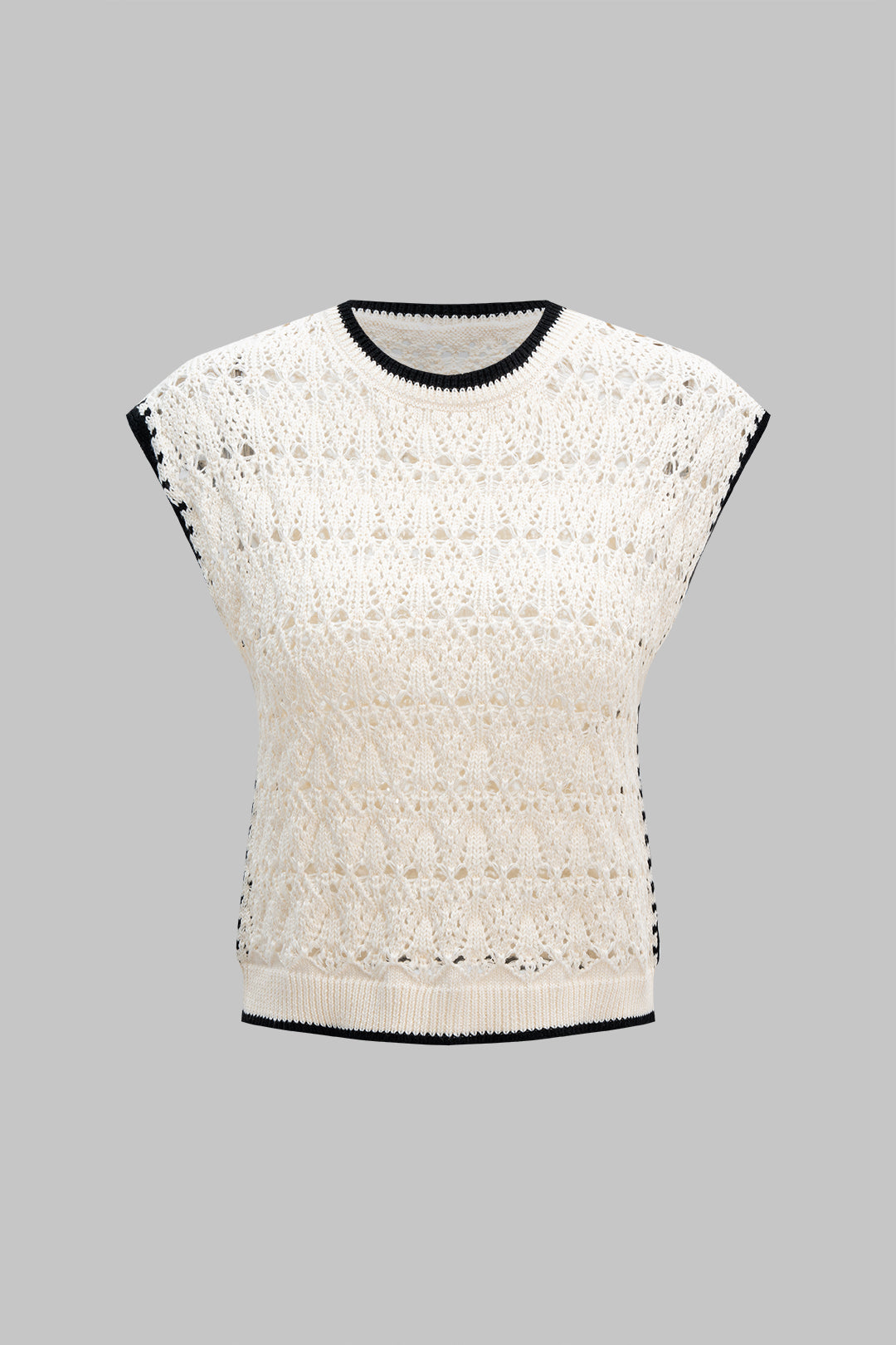Knit Contrast Cut Out Short-Sleeve Shirt