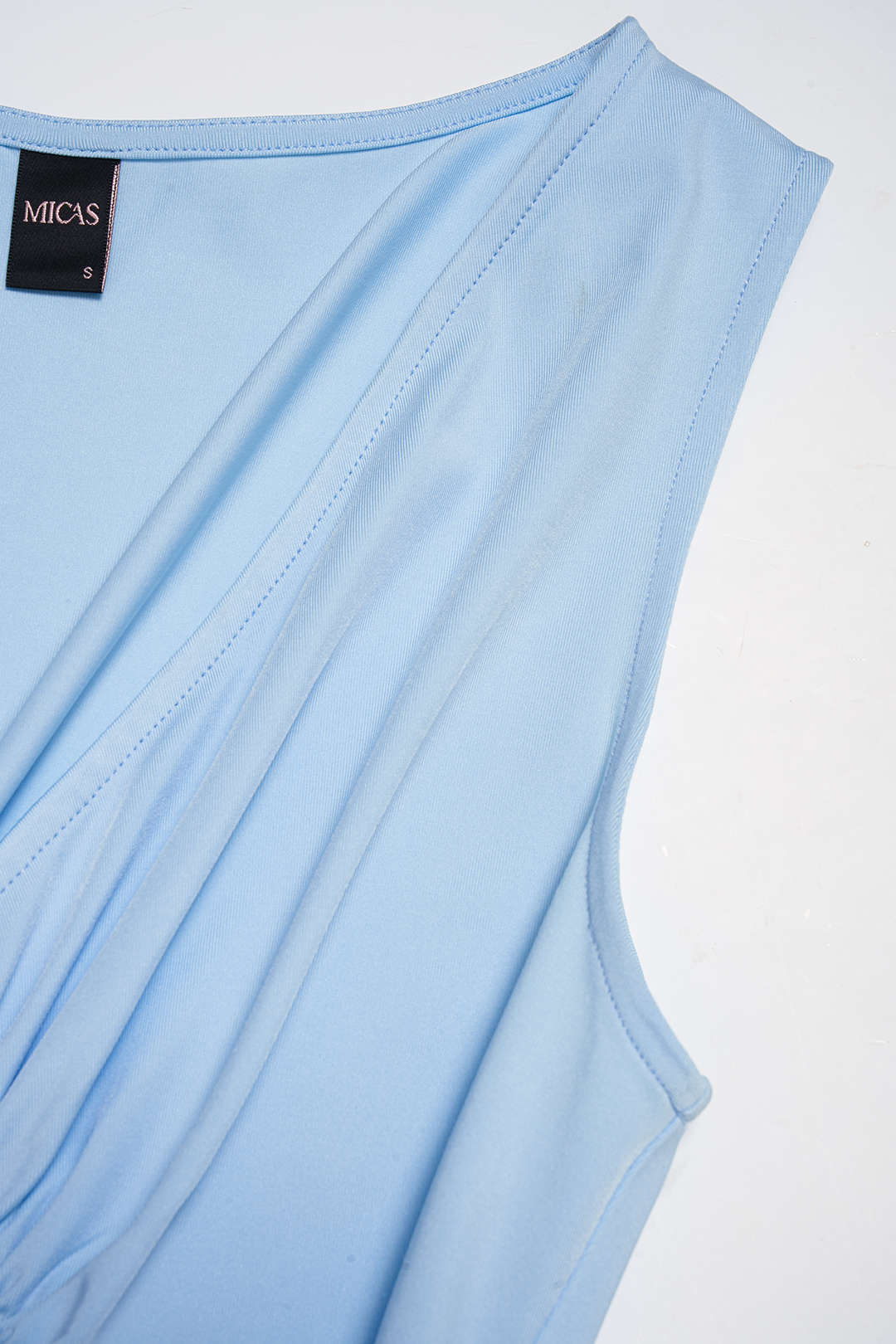 Solid V-Neck Asymmetrical Ruched Sleeveless Maxi Dress