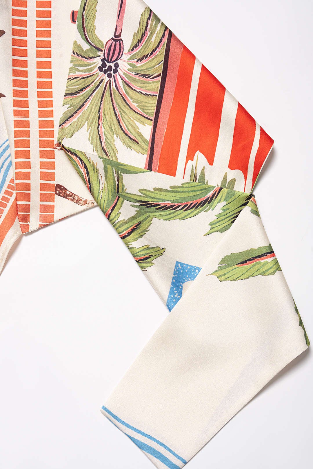 Coconut Palm Stripes Print Satin Strappy Tube Top
