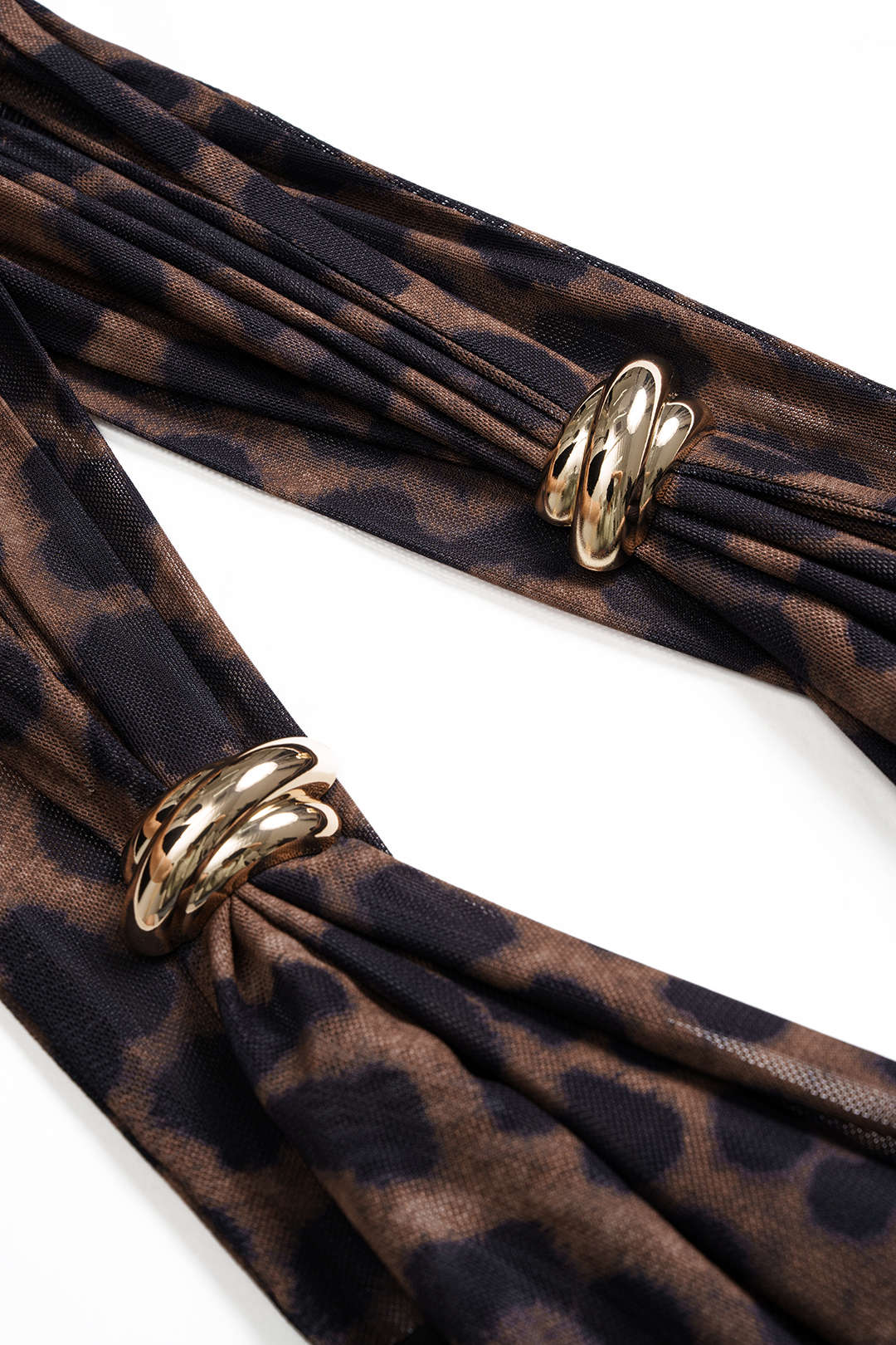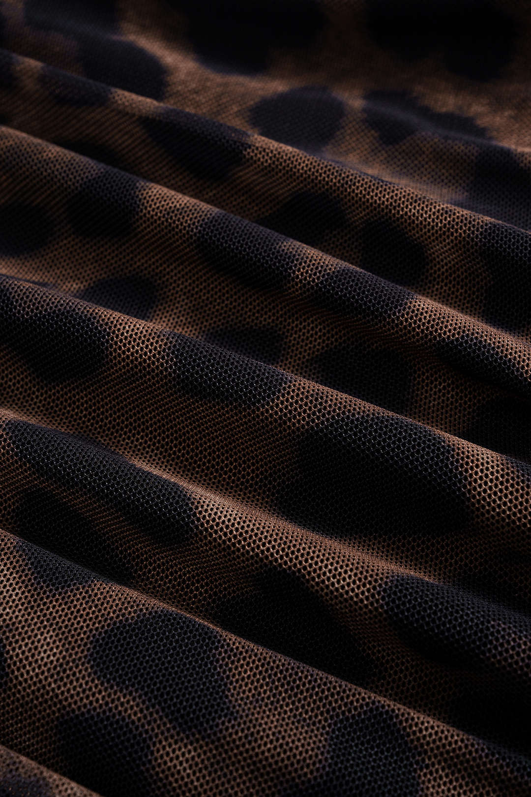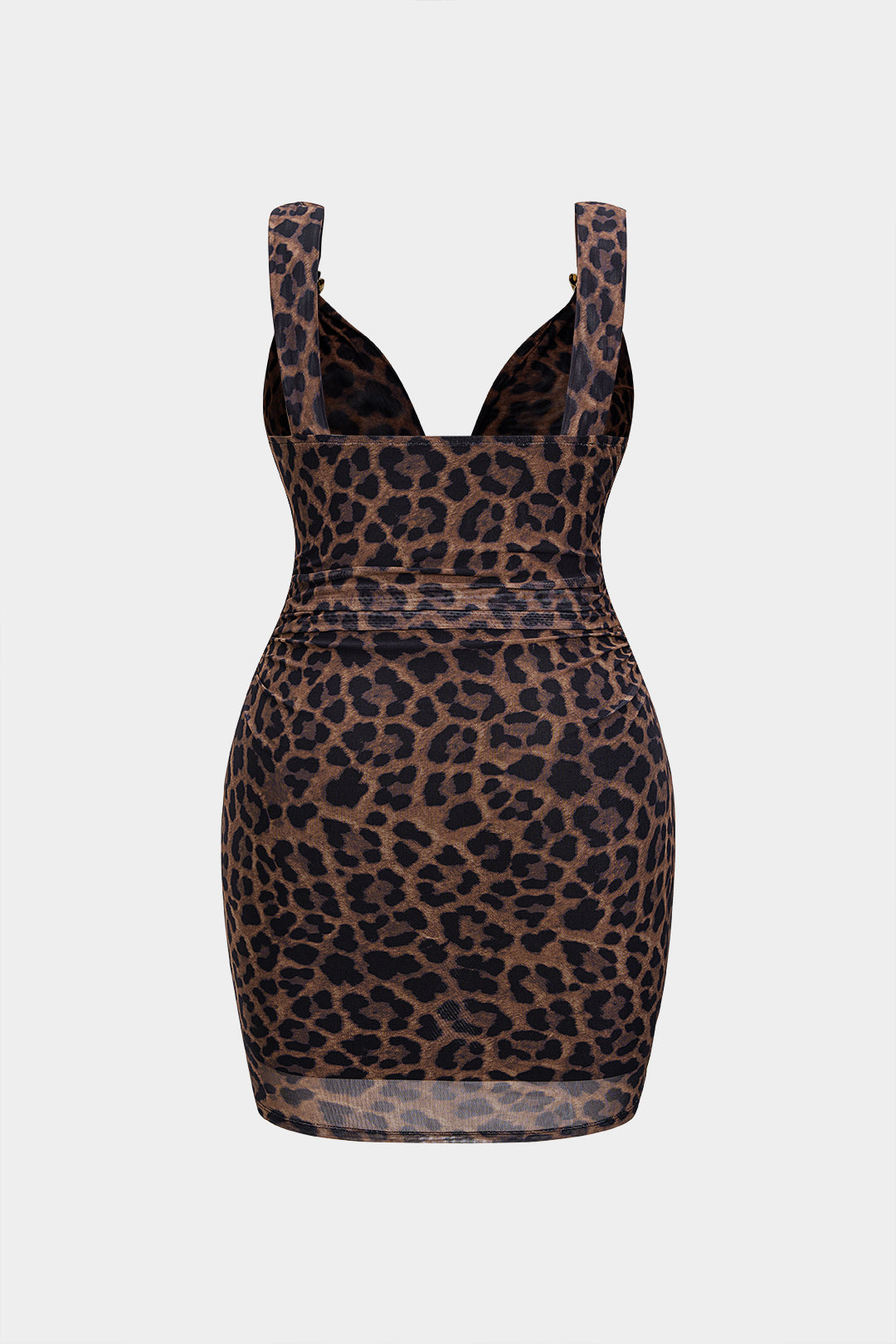 Plus Size Leopard Print Mesh V-Neck Metallic Decor Sleeveless Mini Dress