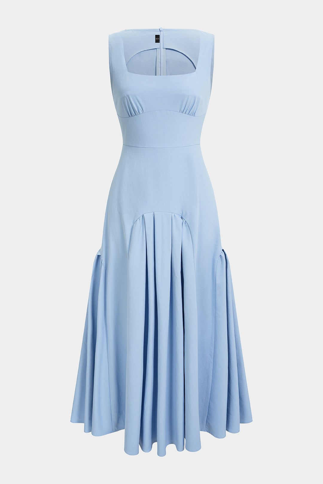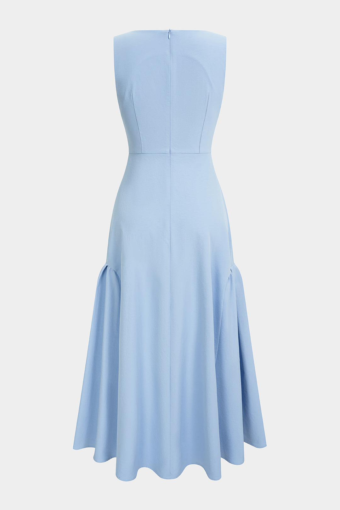 Solid Square Neck Ruched Zipper Sleeveless Midi Dress