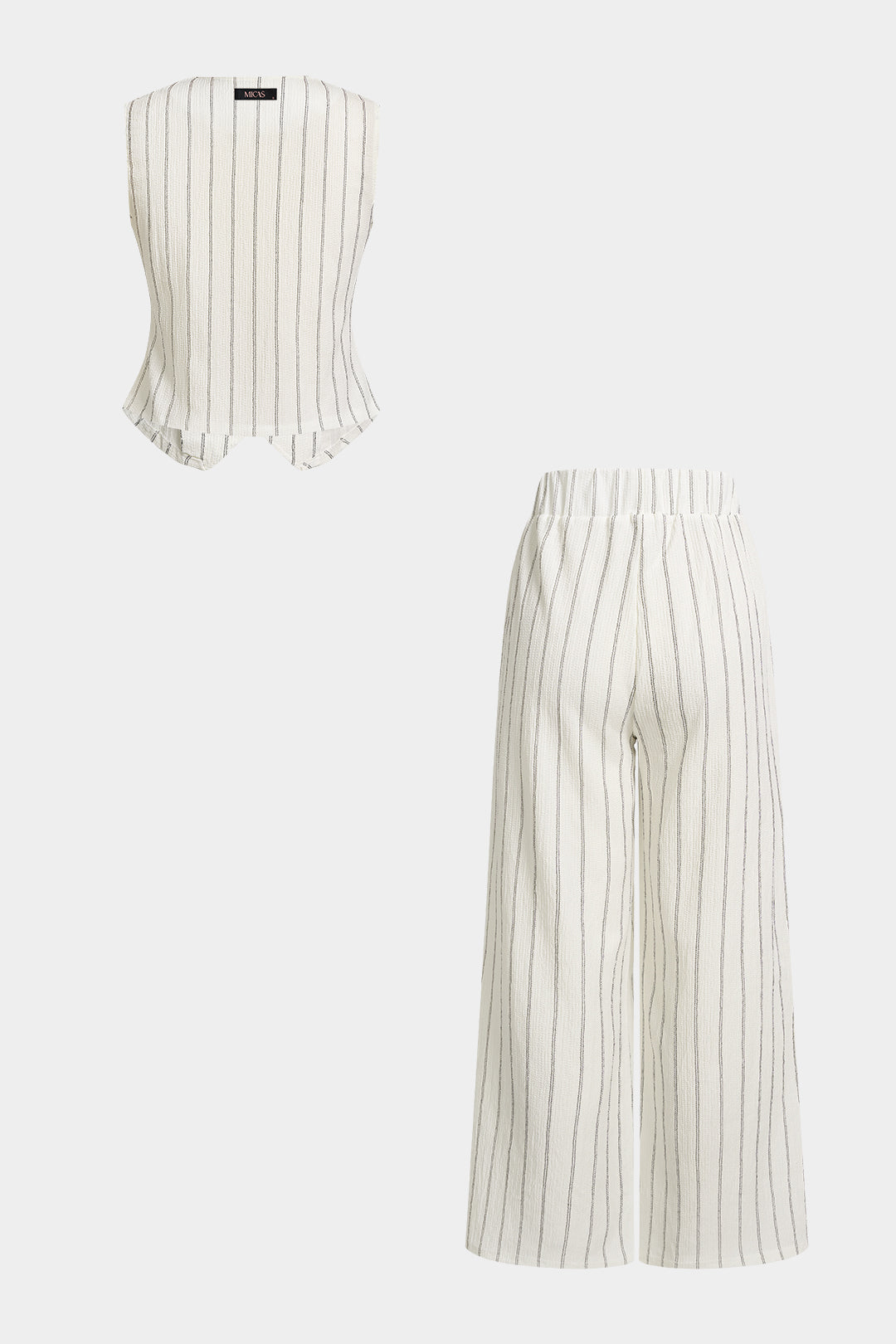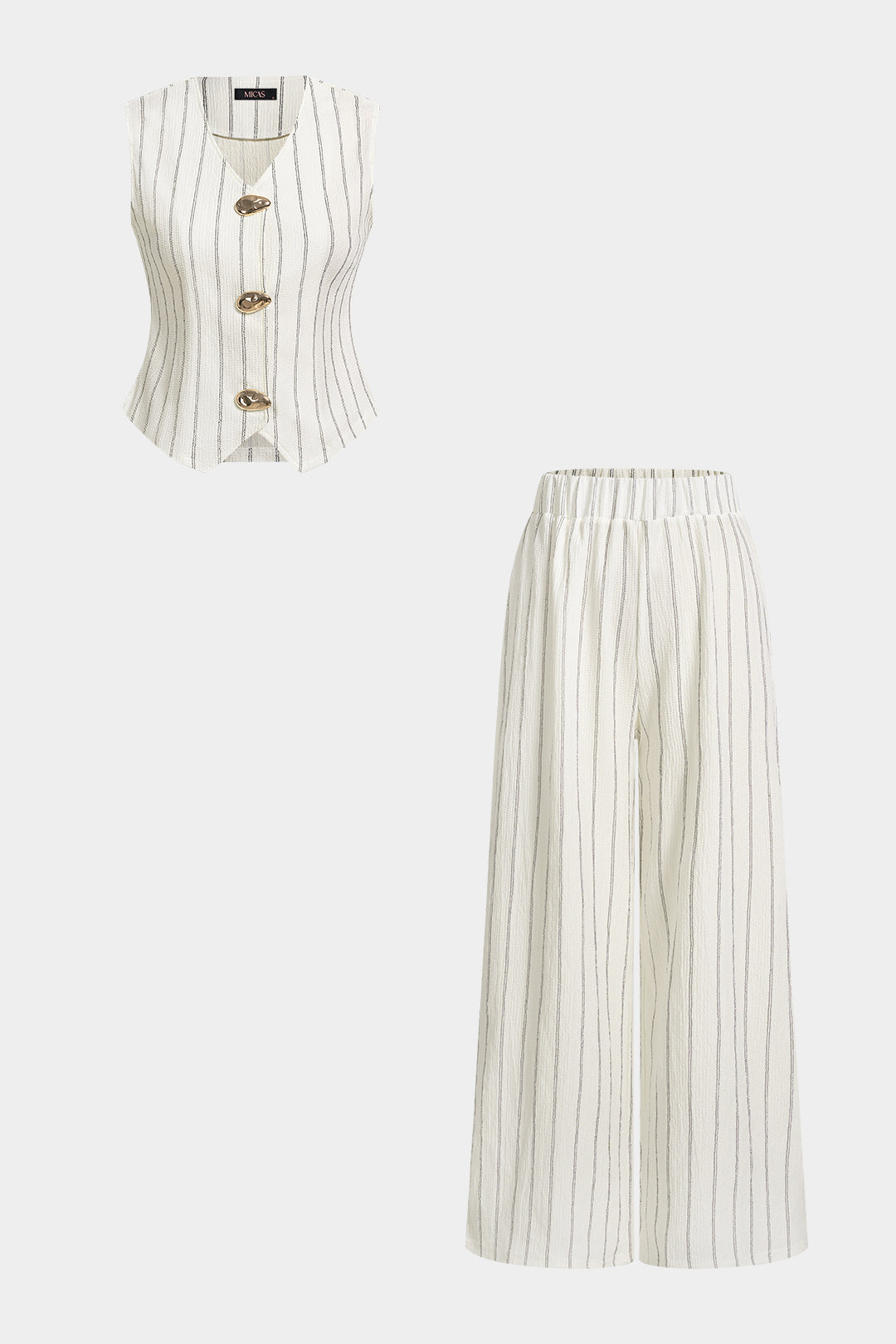 Stripes Print V-Neck Button Vest And Straight Leg Pants Set