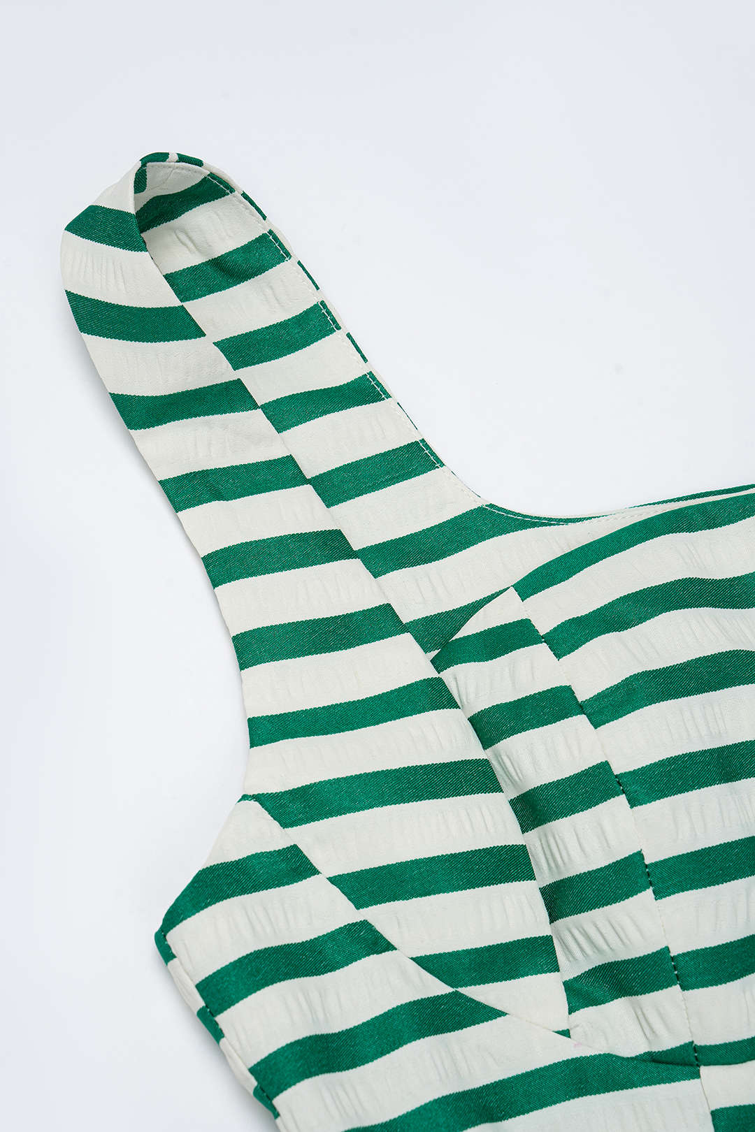 Stripes Print Square Neck Ruched Sleeveless Mini Dress