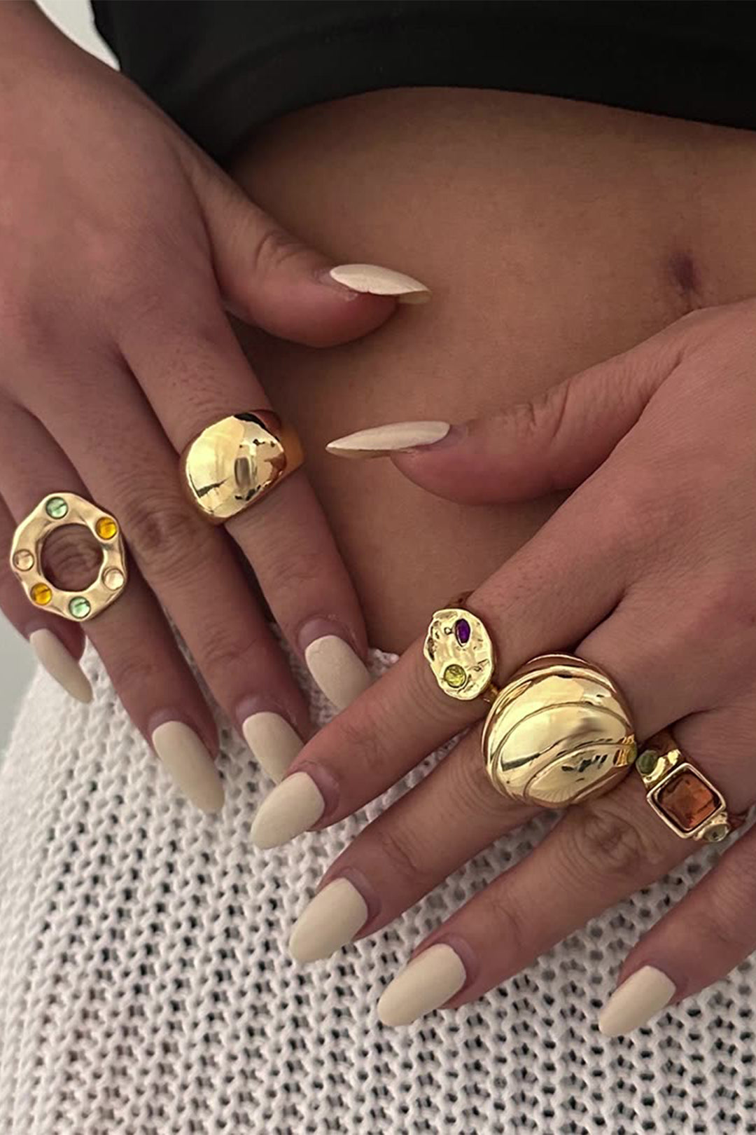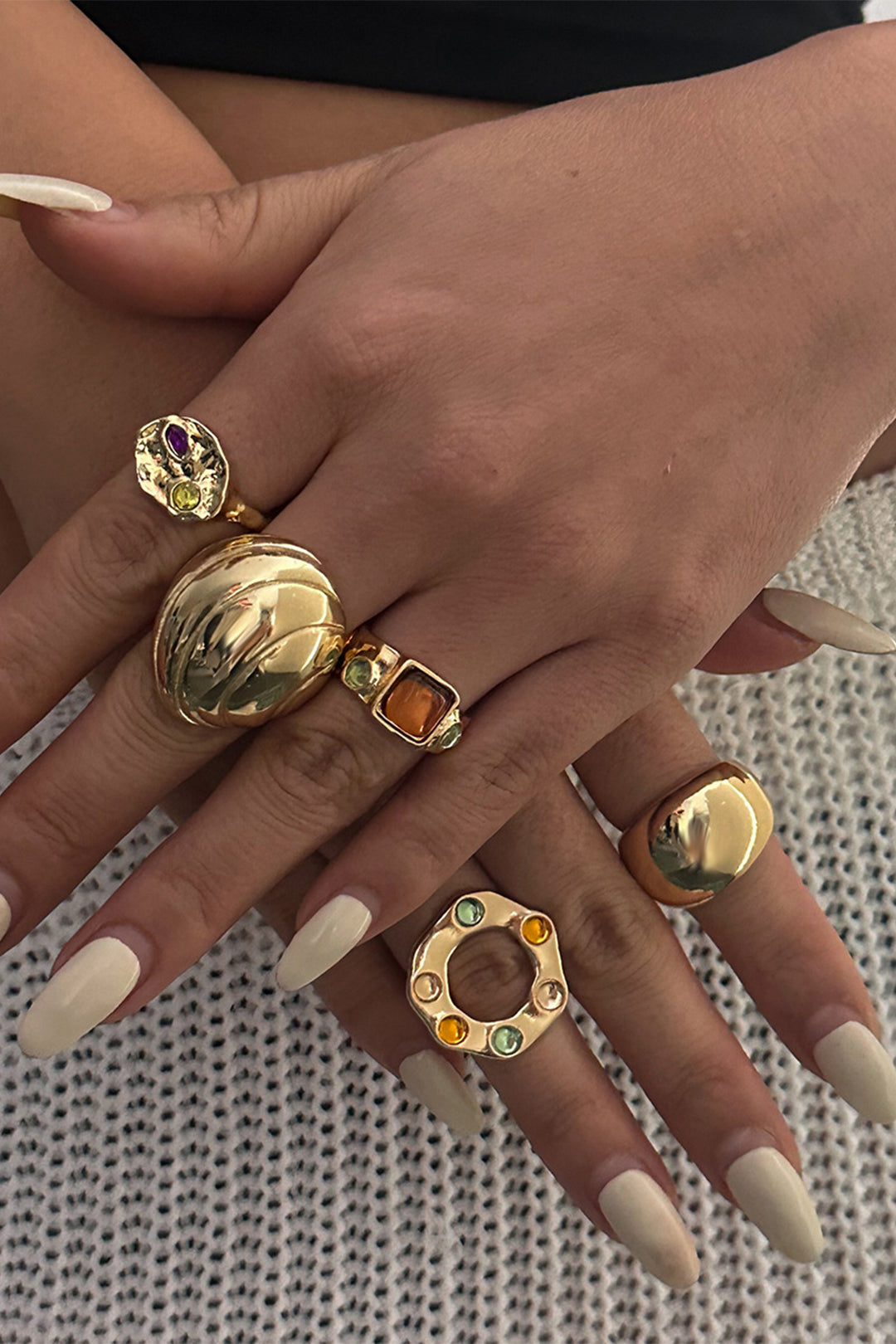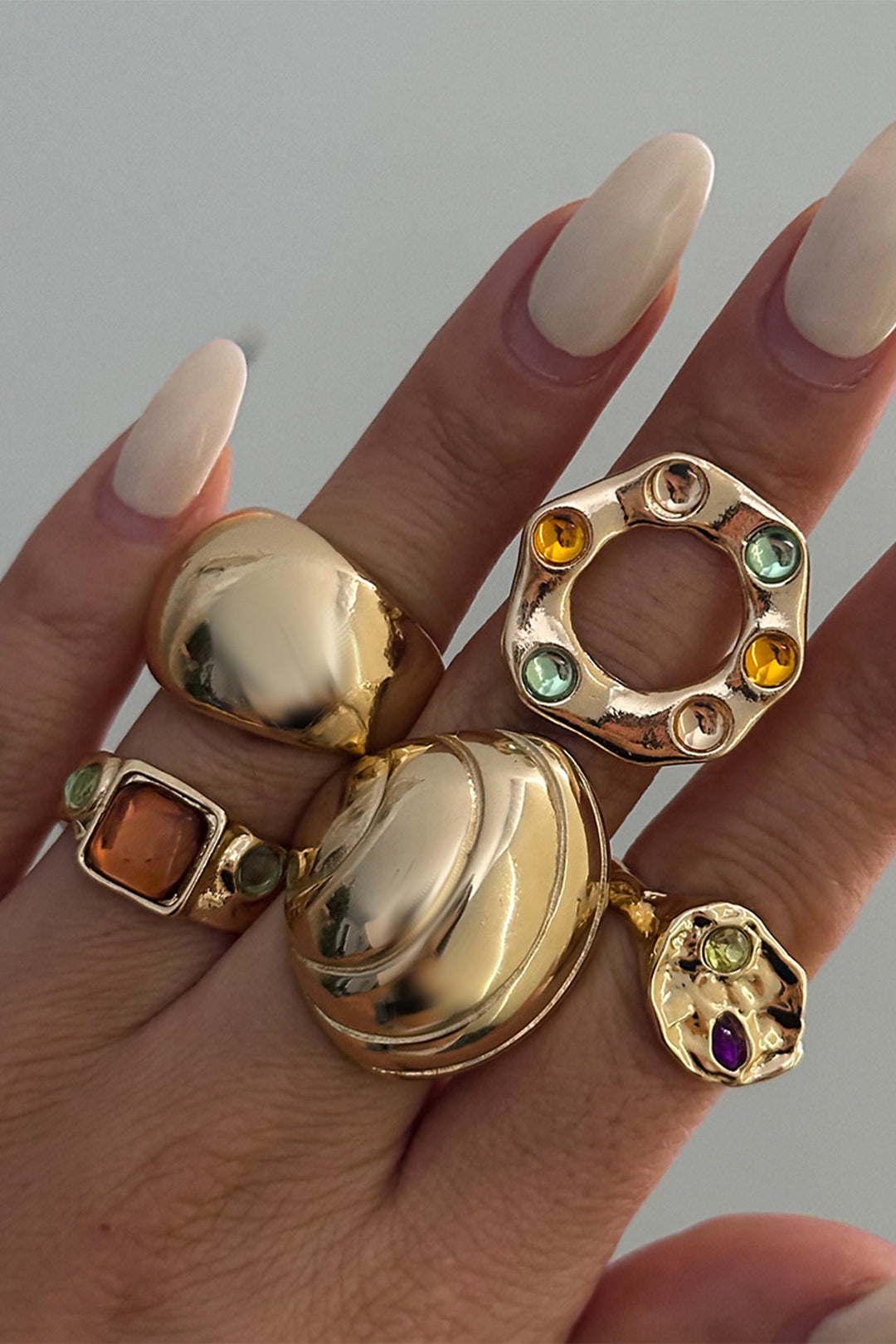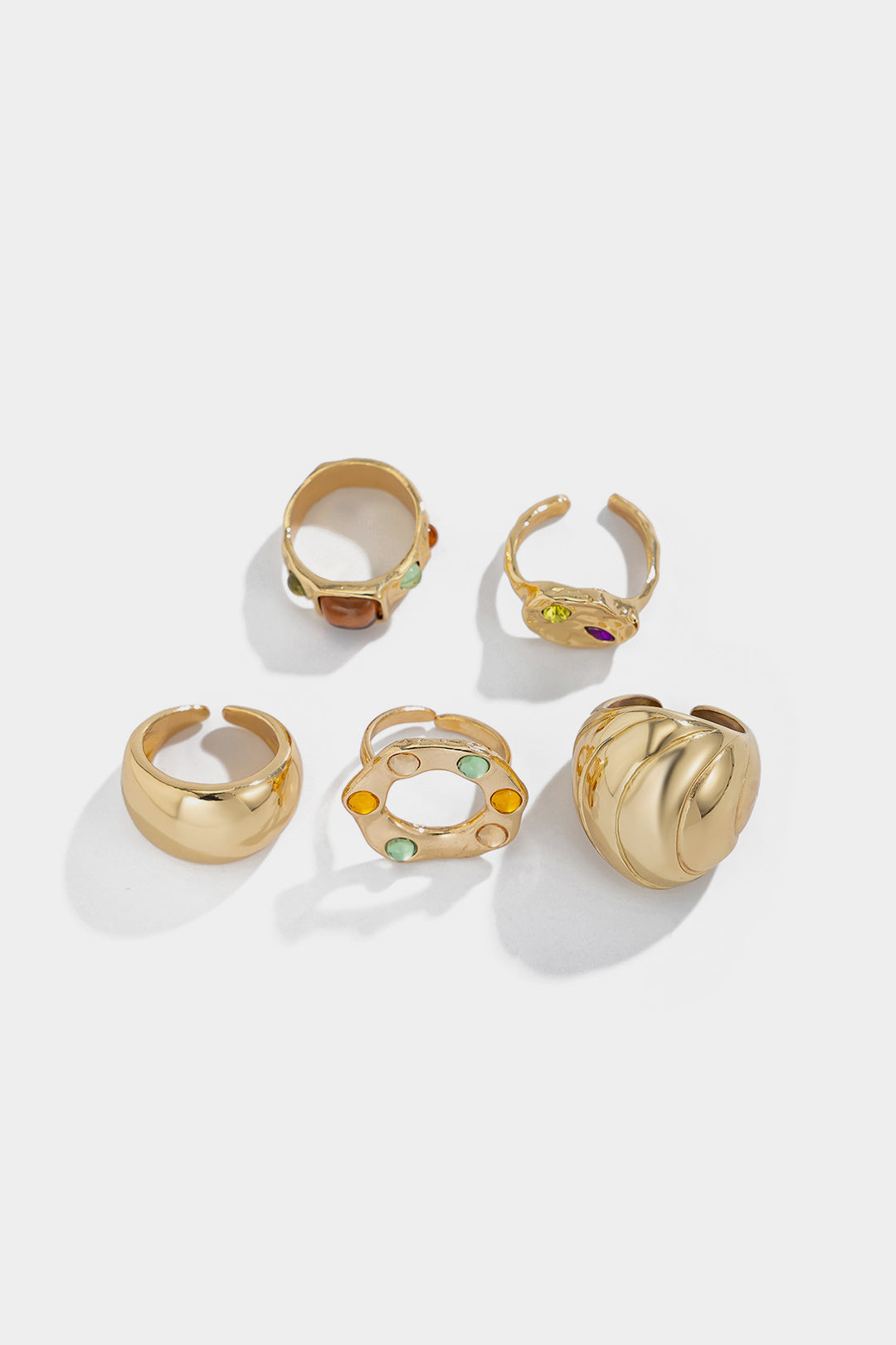 Metal Irregular Geometric Rhinestone Open Ring Set
