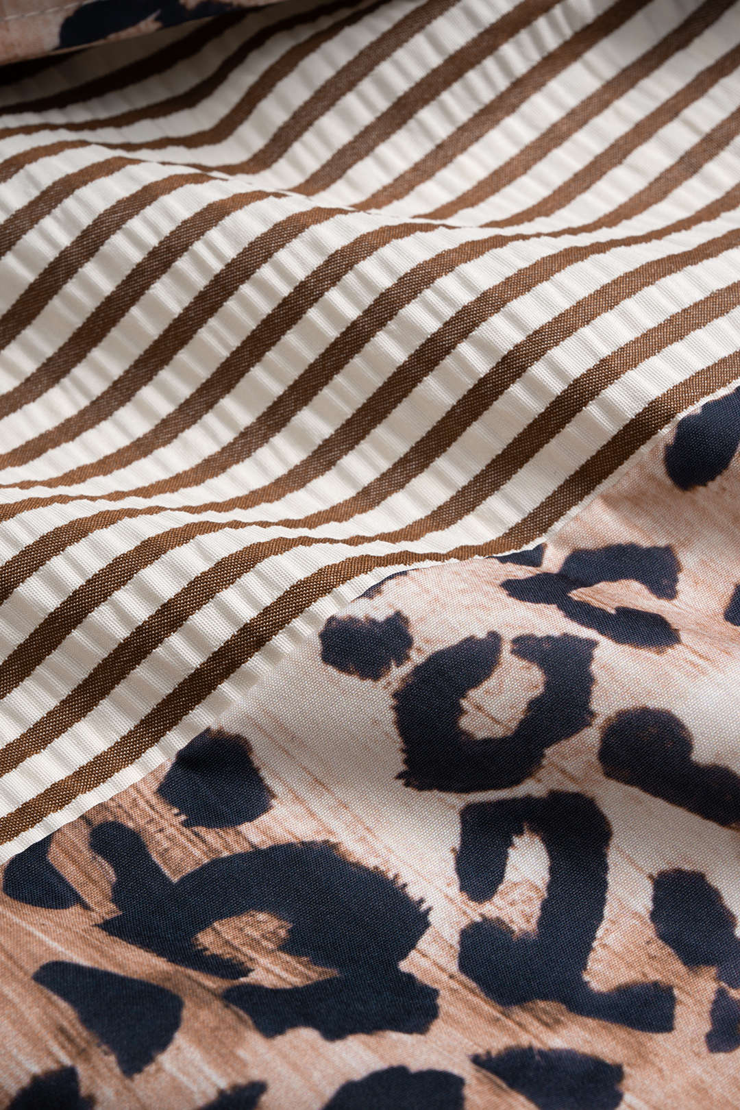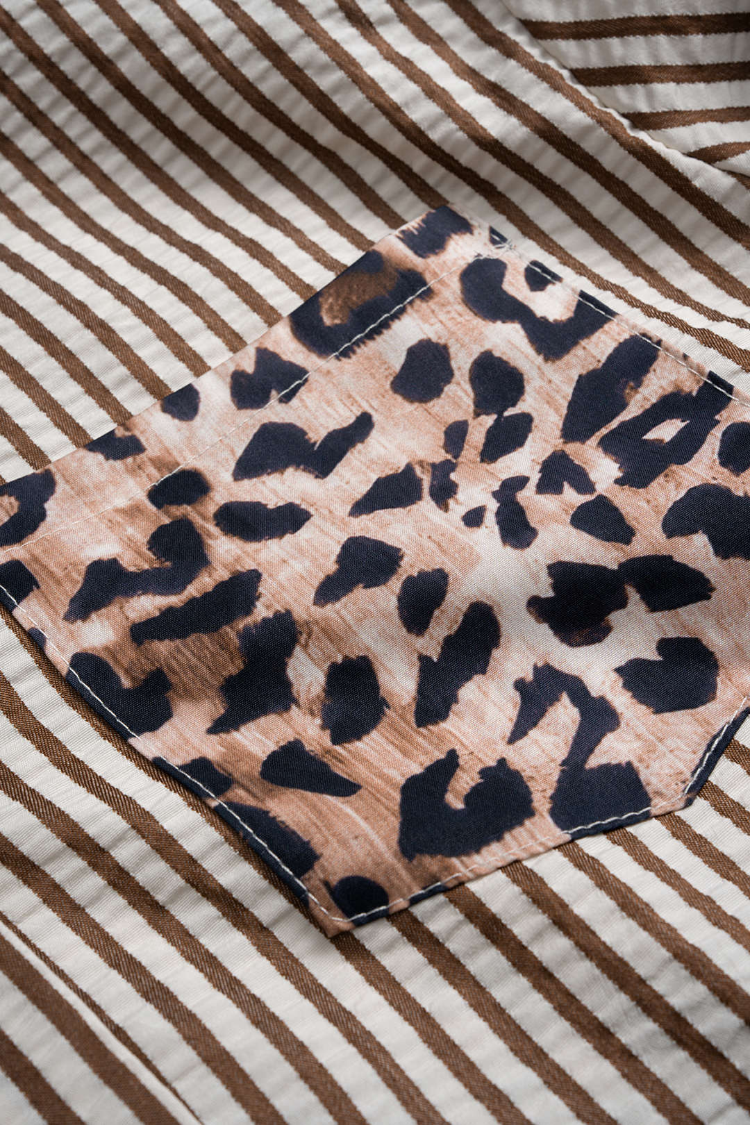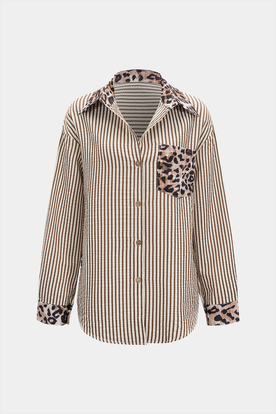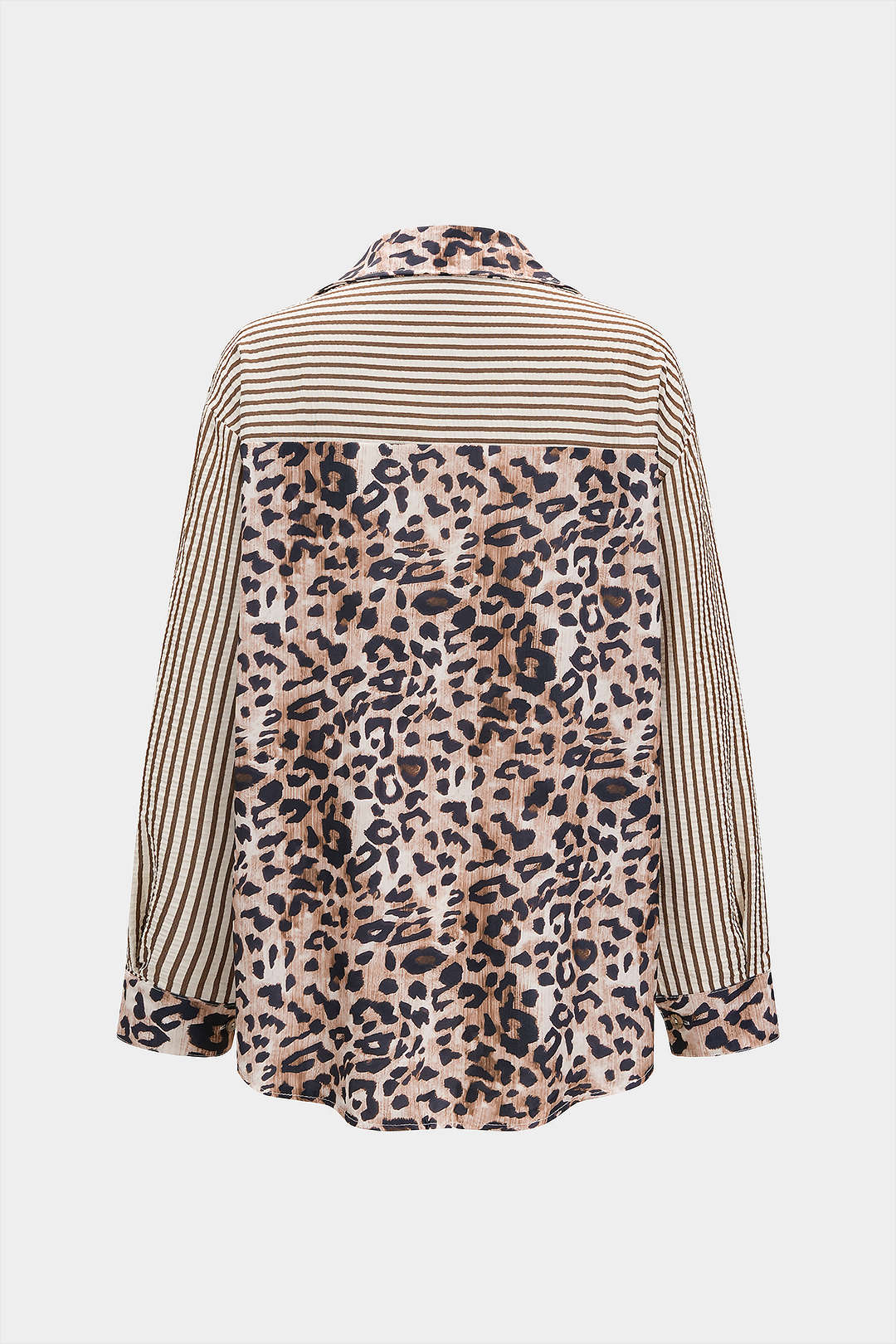 Striped Leopard Print Button Long-Sleeve Shirt