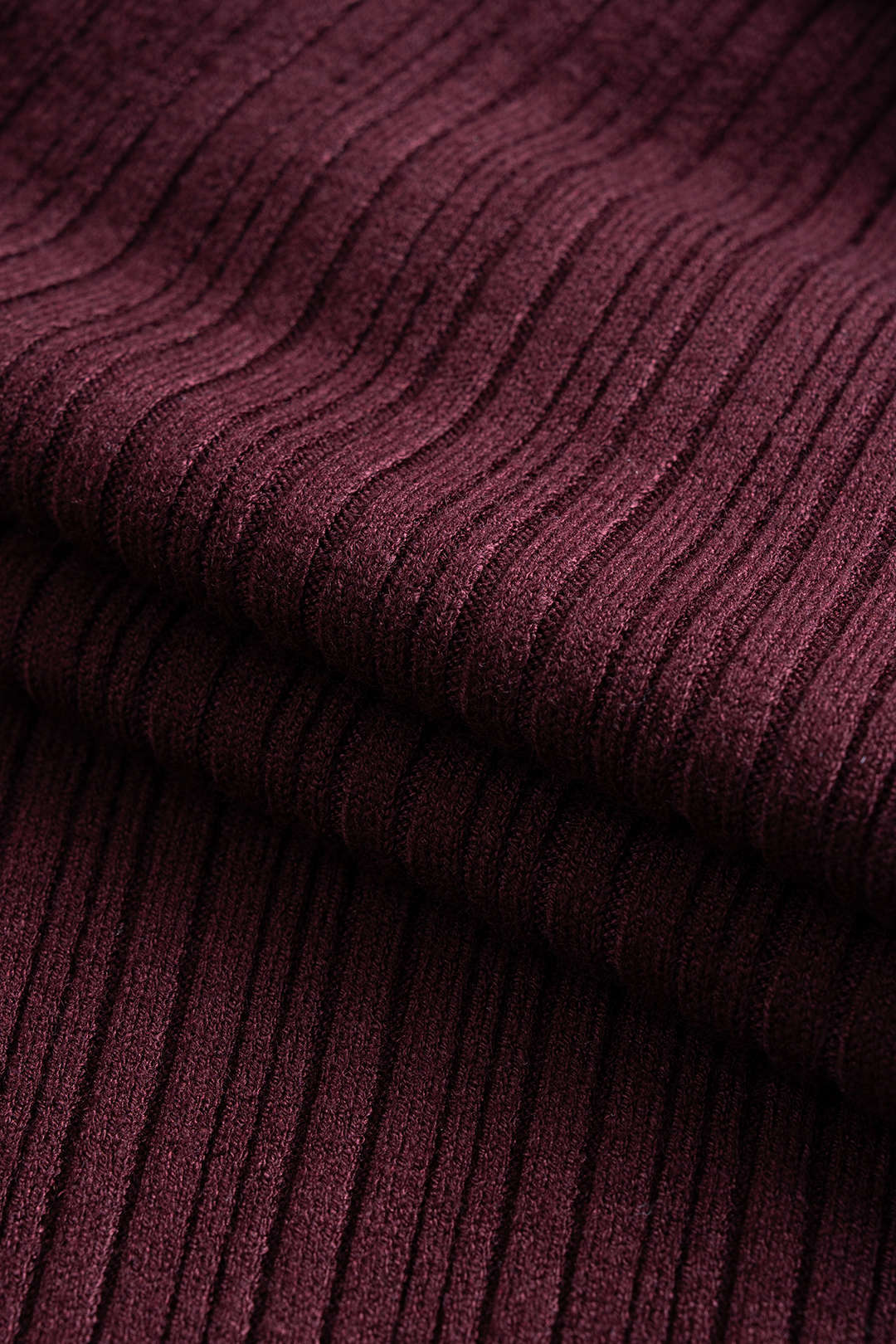 Knit Round Neck Tie-Back Scallop Edge Long Sleeve Dress
