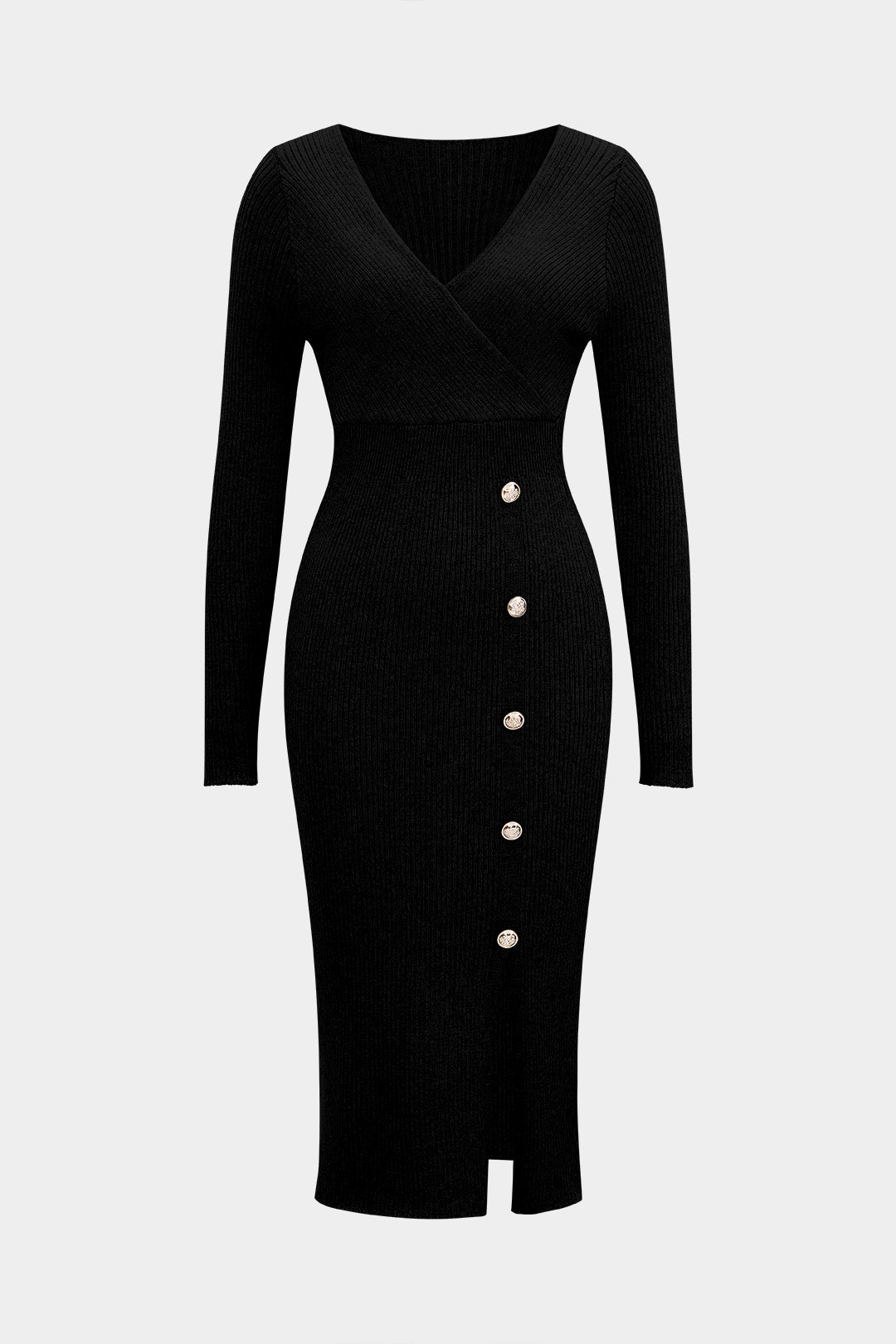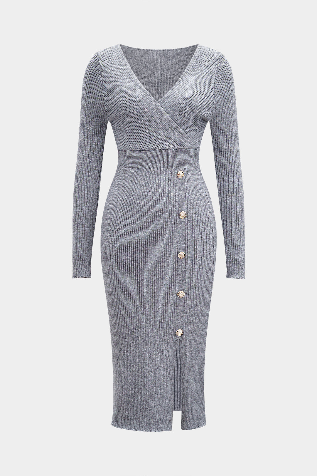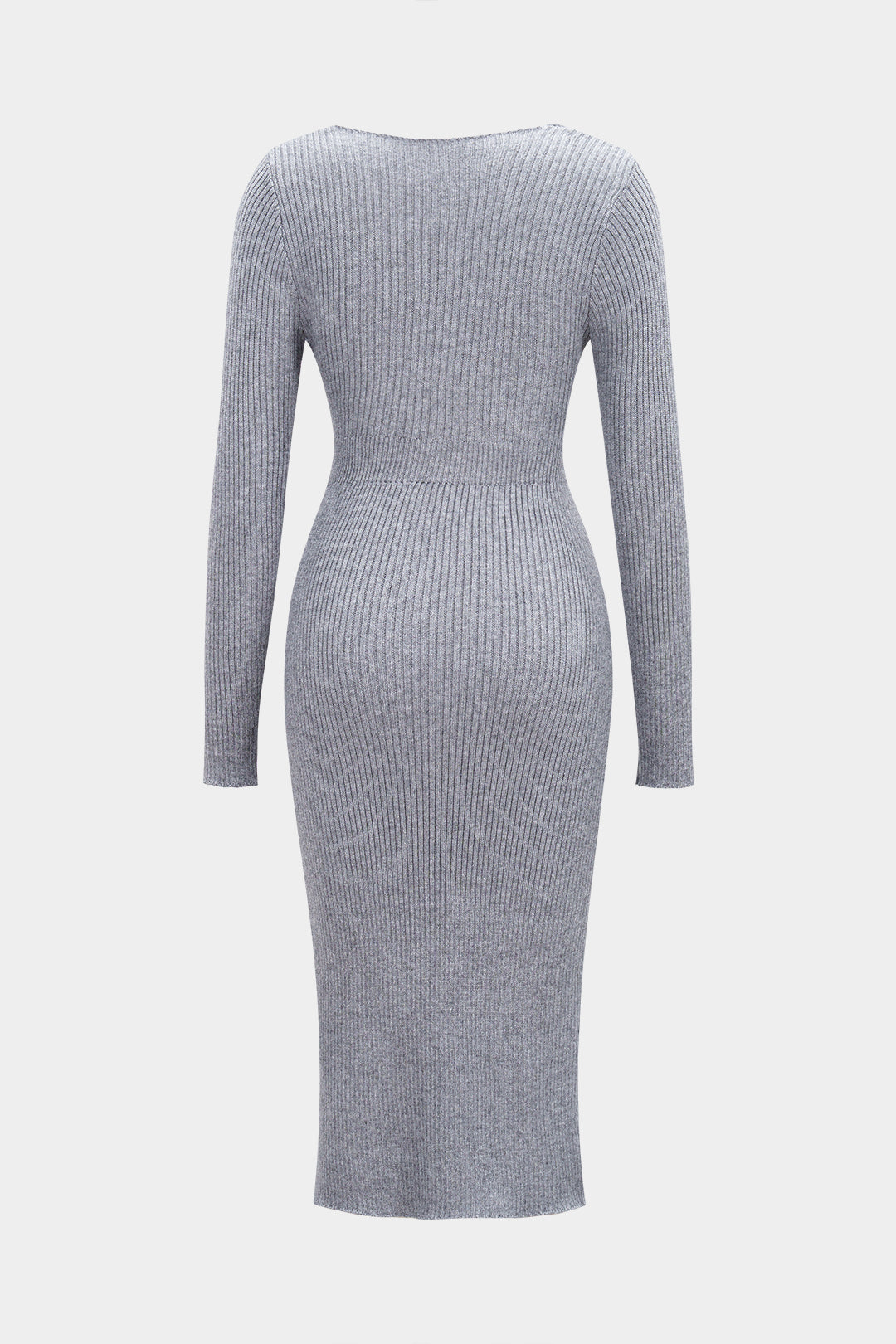 Knit Solid Button Waist Cinched Long Sleeve Dress