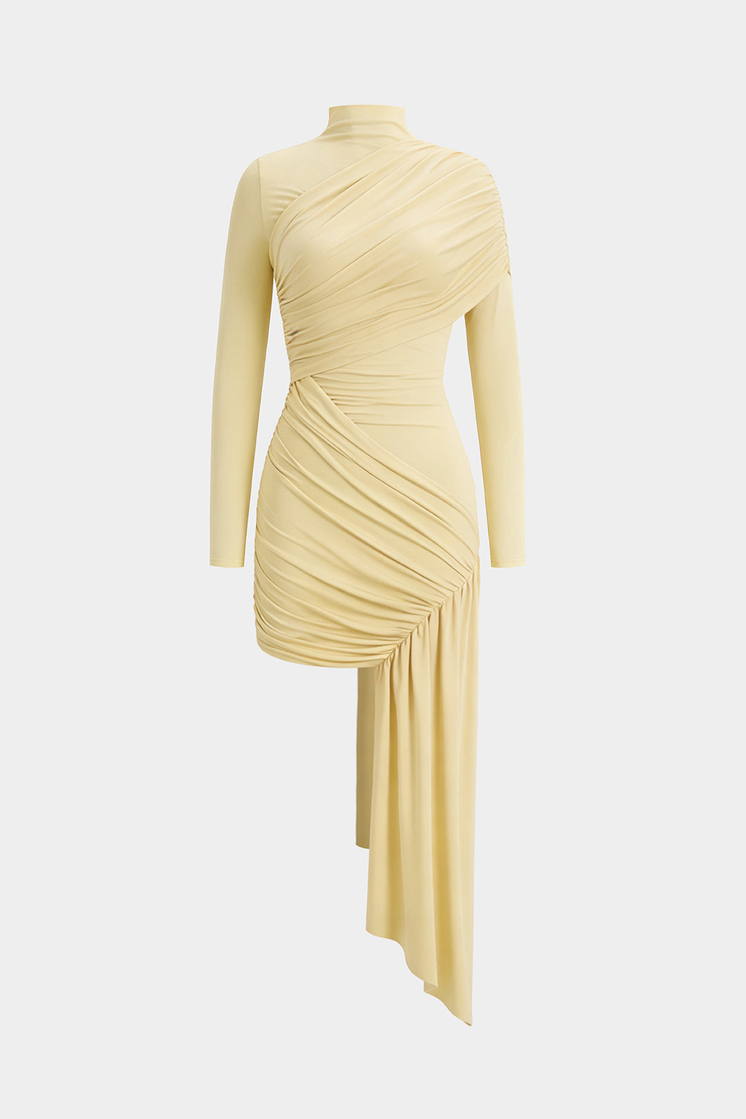 Mock Neck Asymmetrical Ruched Long Sleeve Mini Dress
