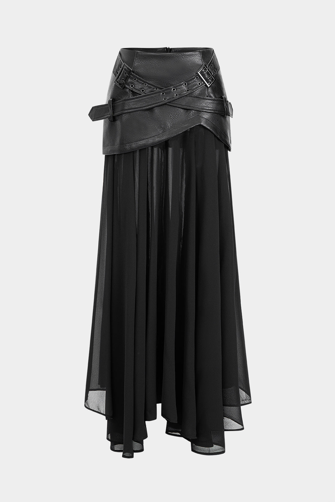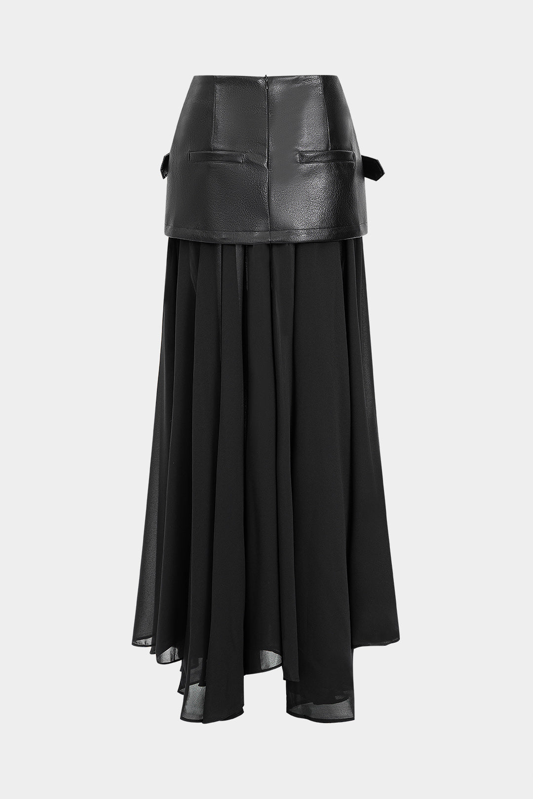 Faux Leather Patchwork Asymmetrical Midi Skirt
