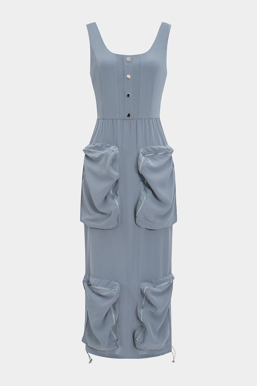 Chiffon Pocket Tank Sleeveless Maxi Dress