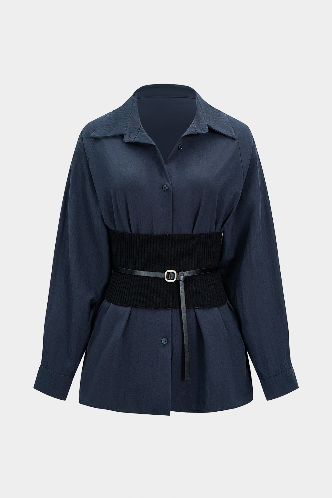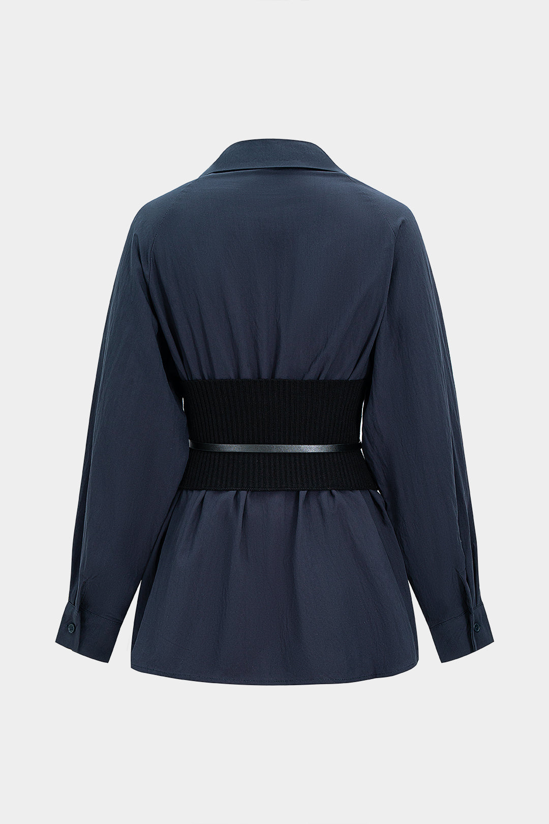 Patchwork Belted Long-Sleeve Shirt