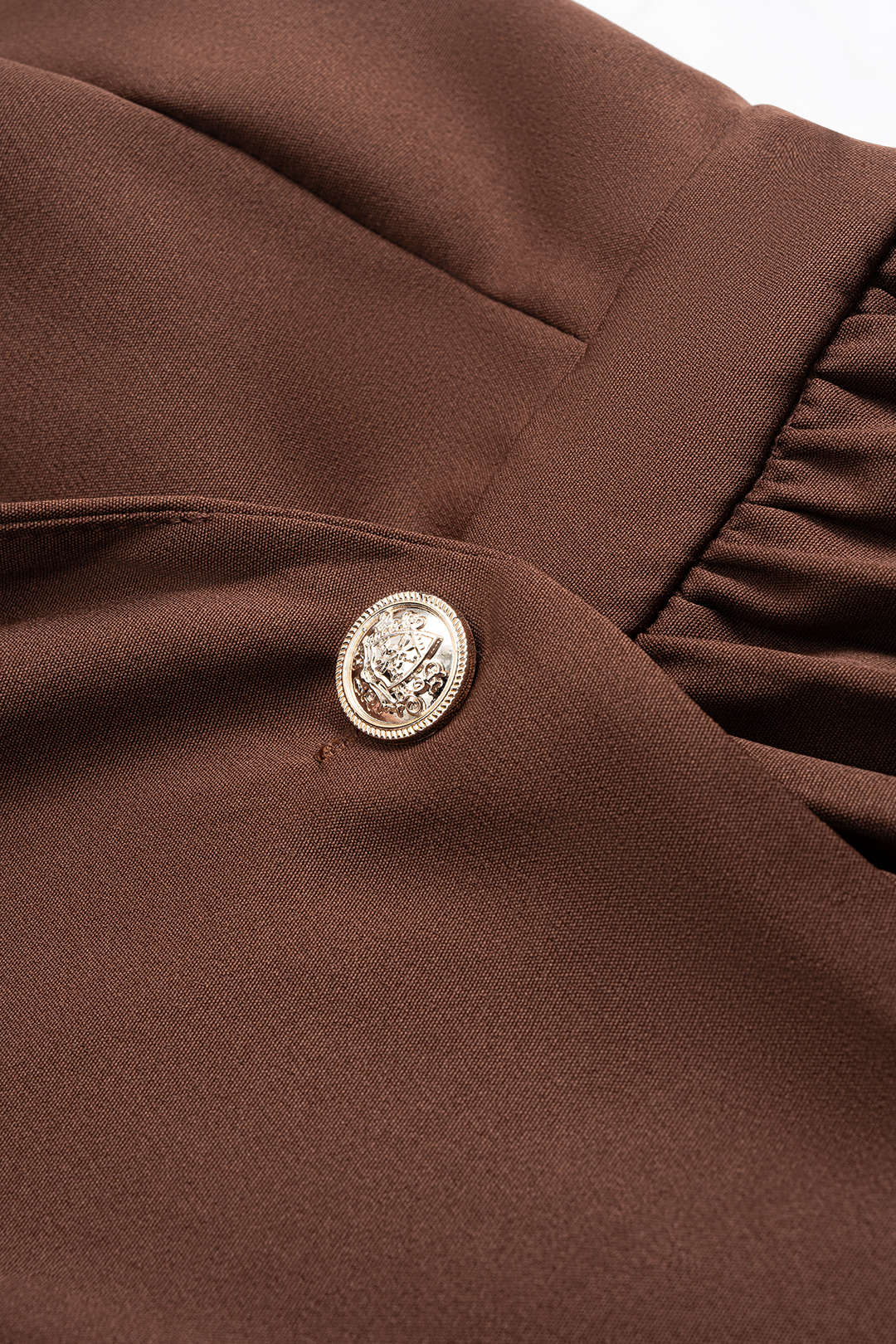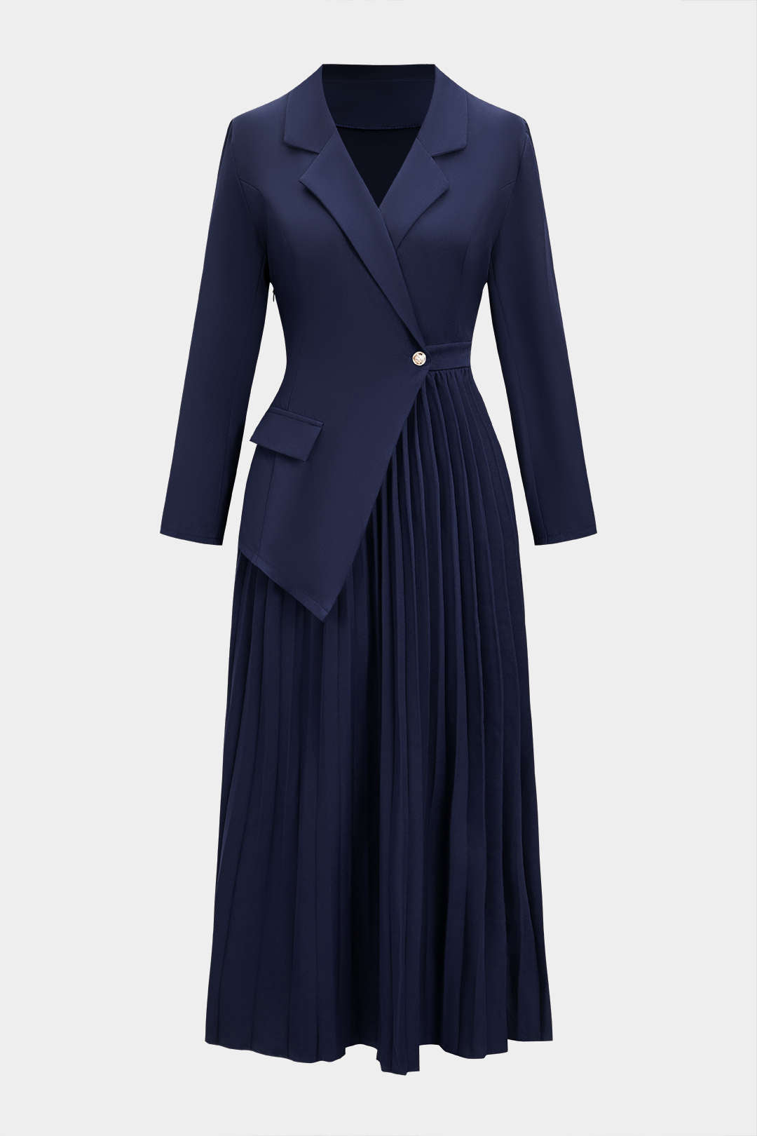 Notched Lapel Pleated Asymmetrical Long-Sleeve Maxi Dress