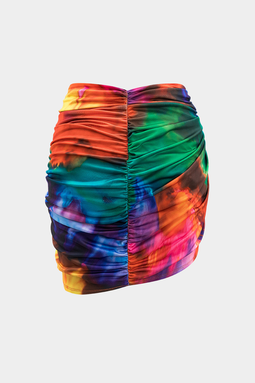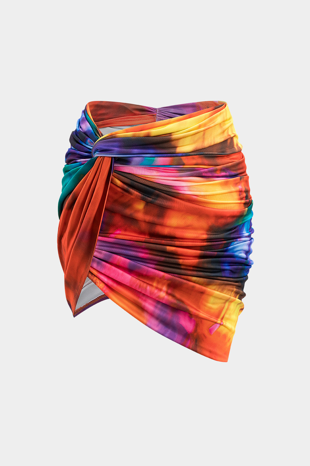Lipsuvärvi ombre print ruched keerd sõlme seelik