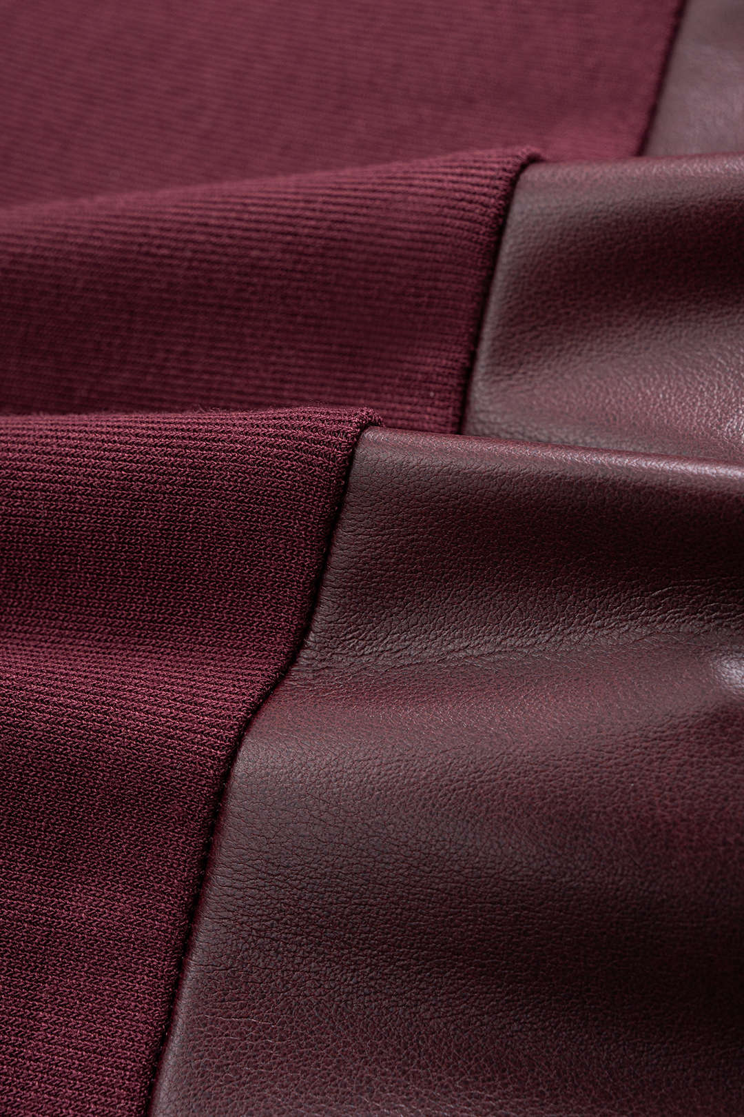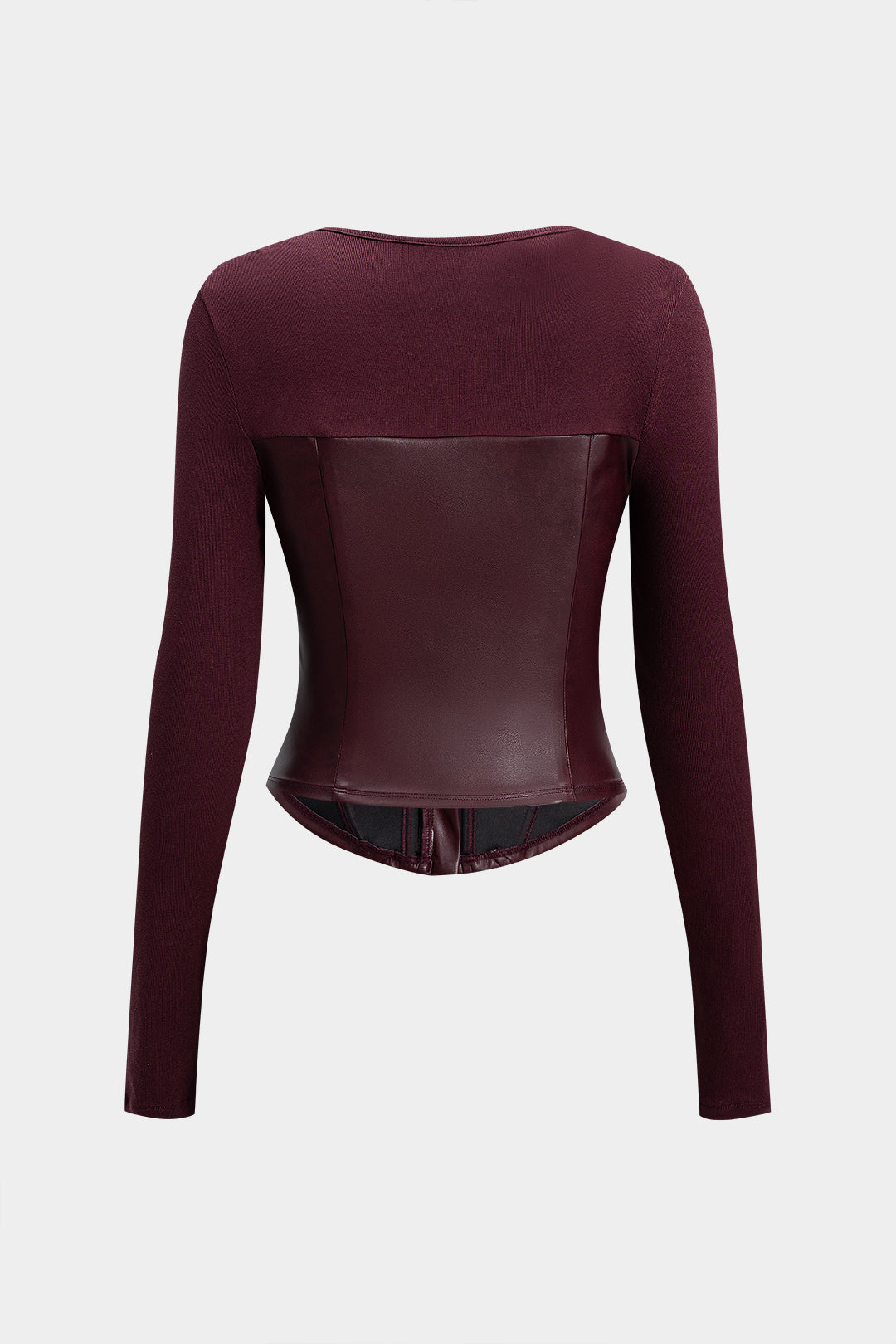 Faux Leather Zipper Patchwork Long-Sleeve Top