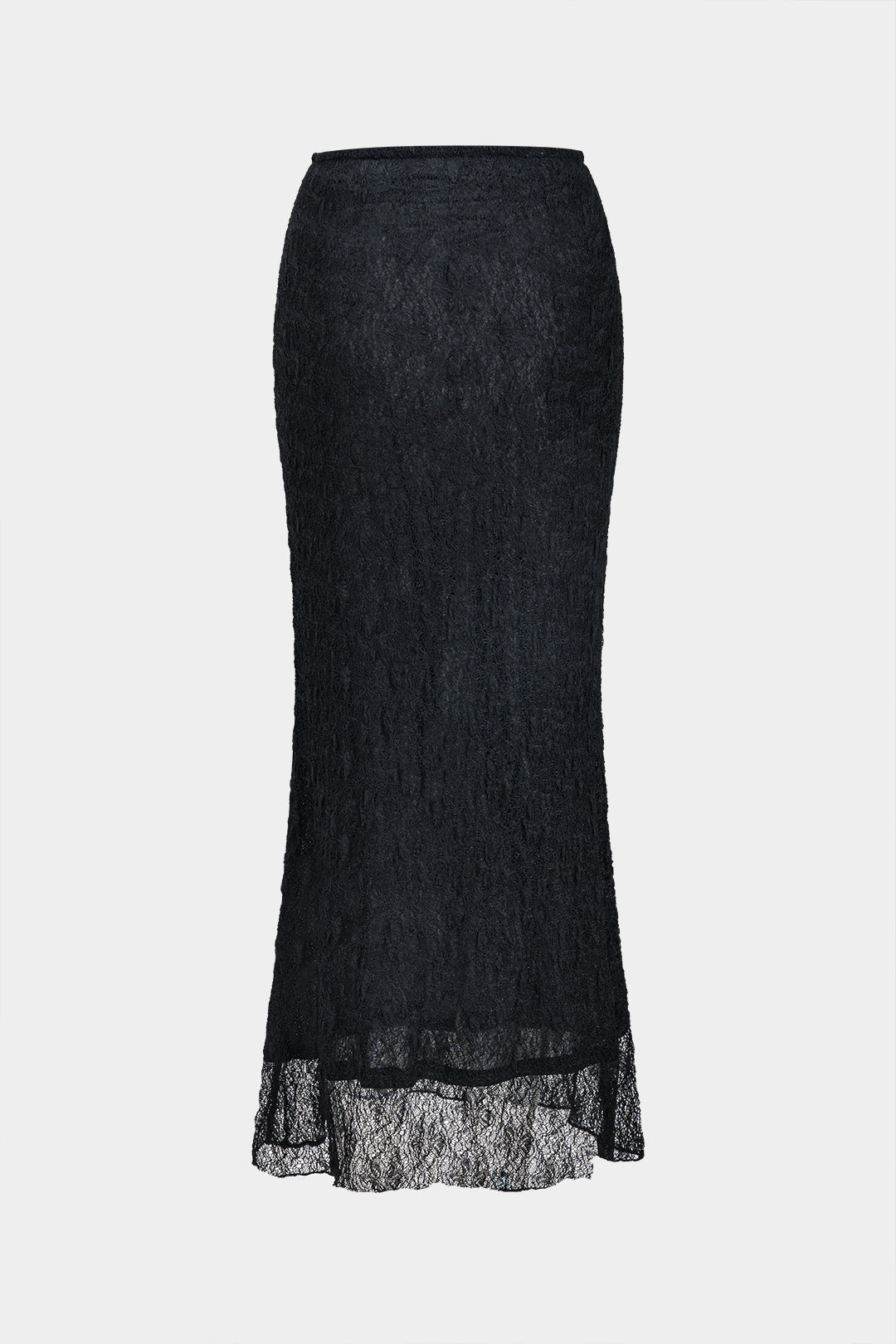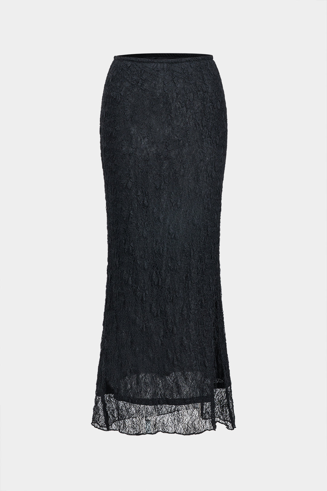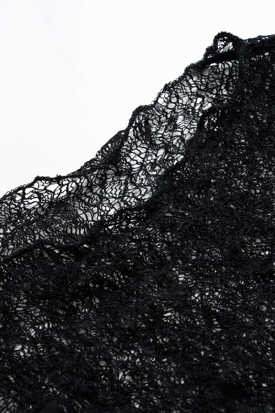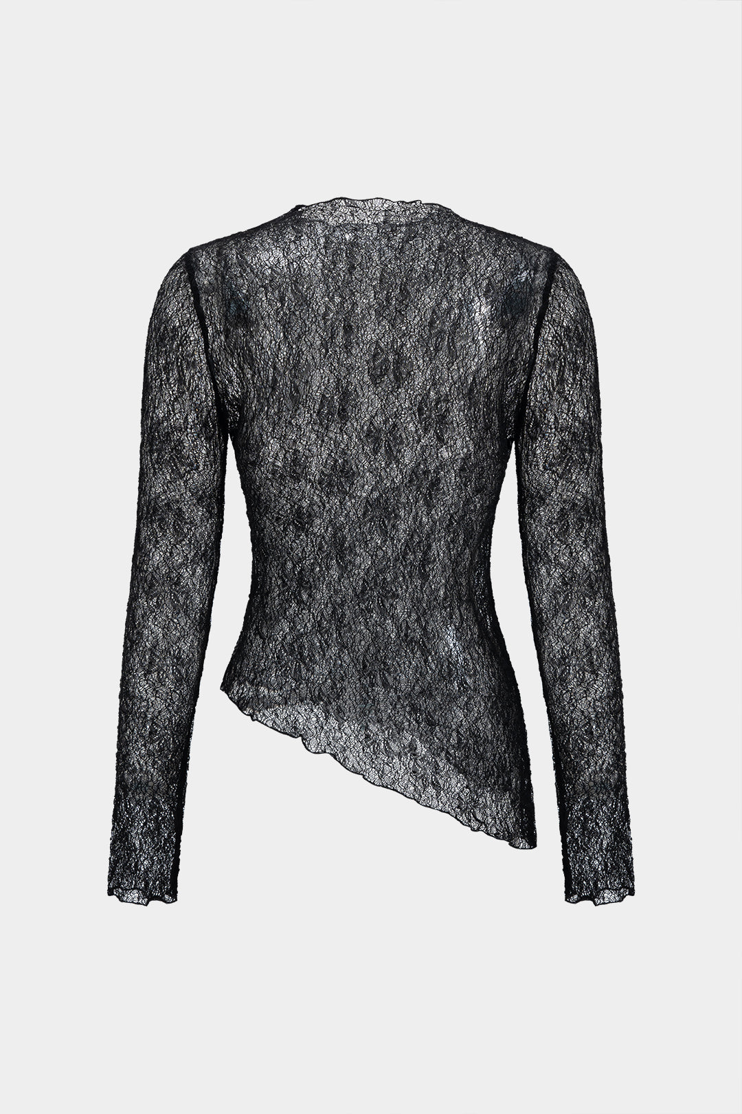 Lace Sheer Asymmetrical Long Sleeve Top And Skirt Set