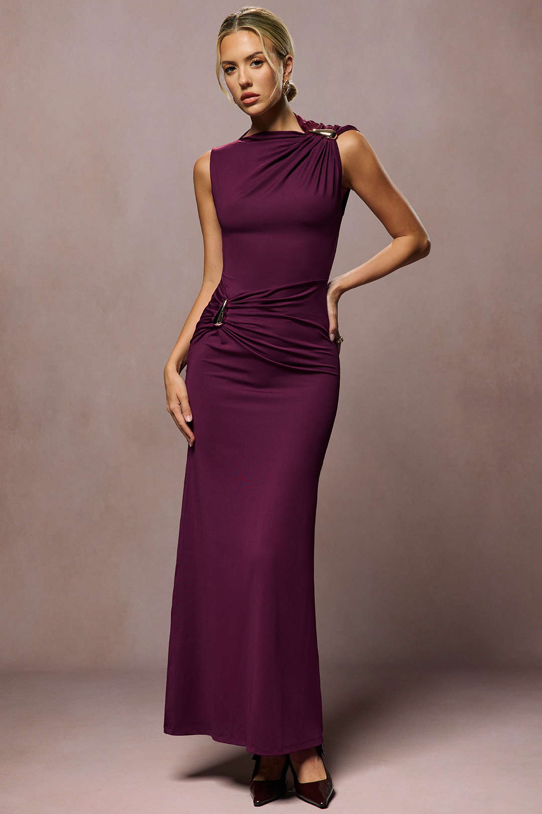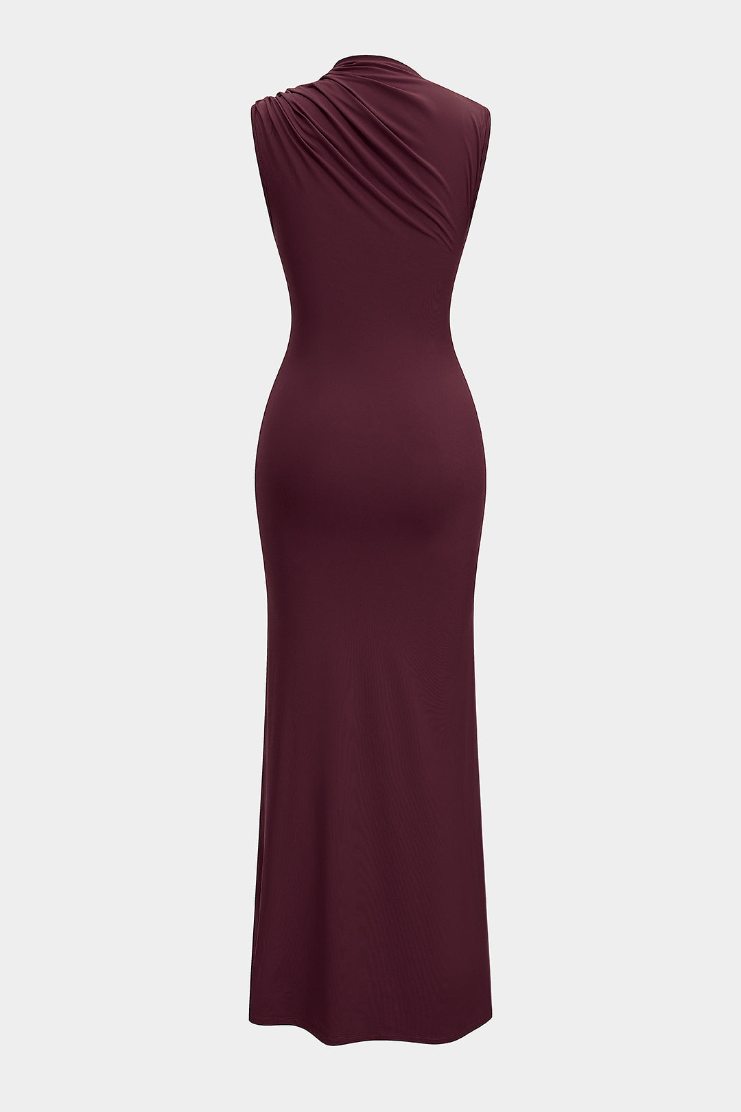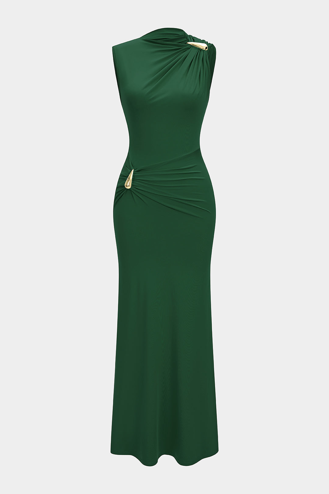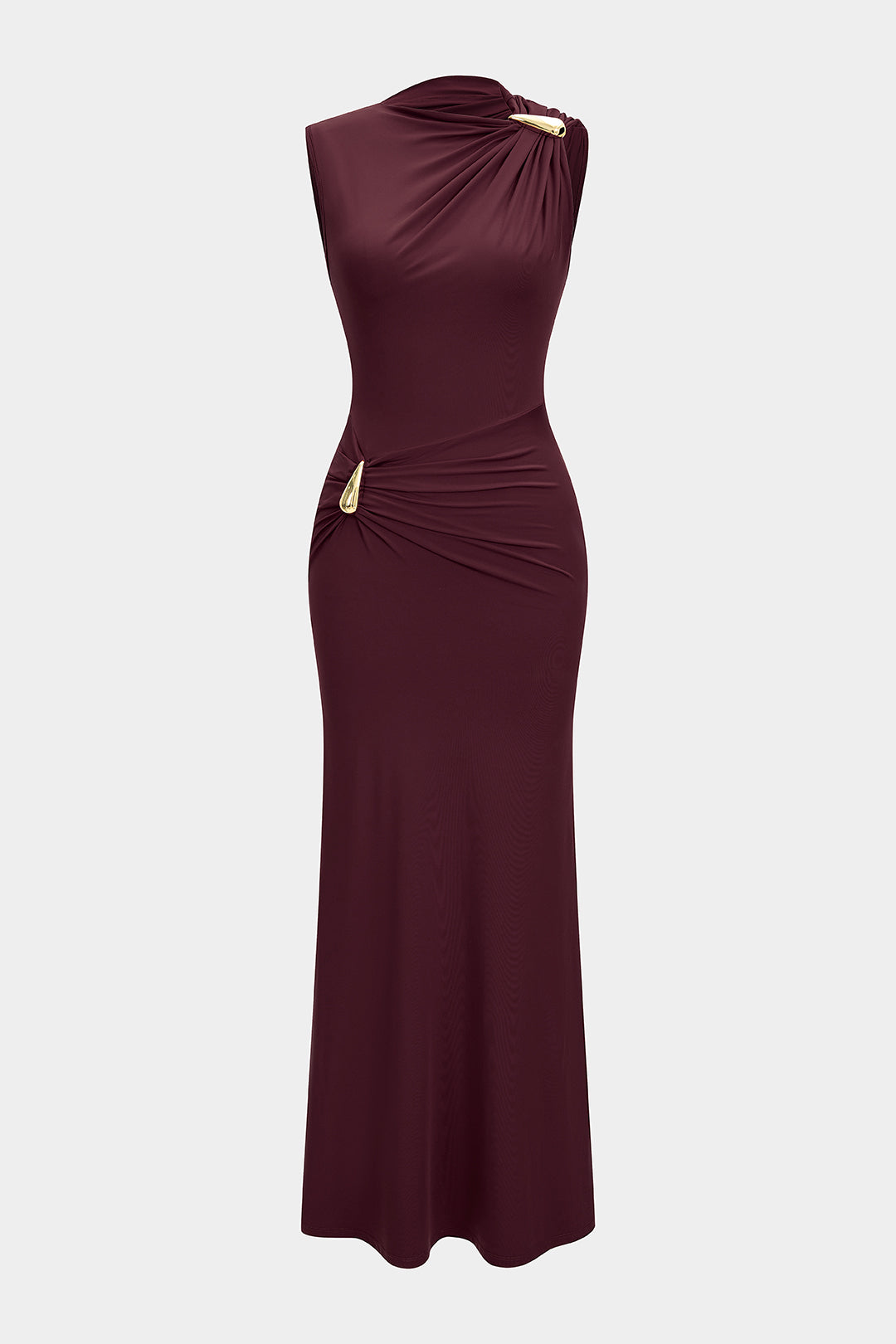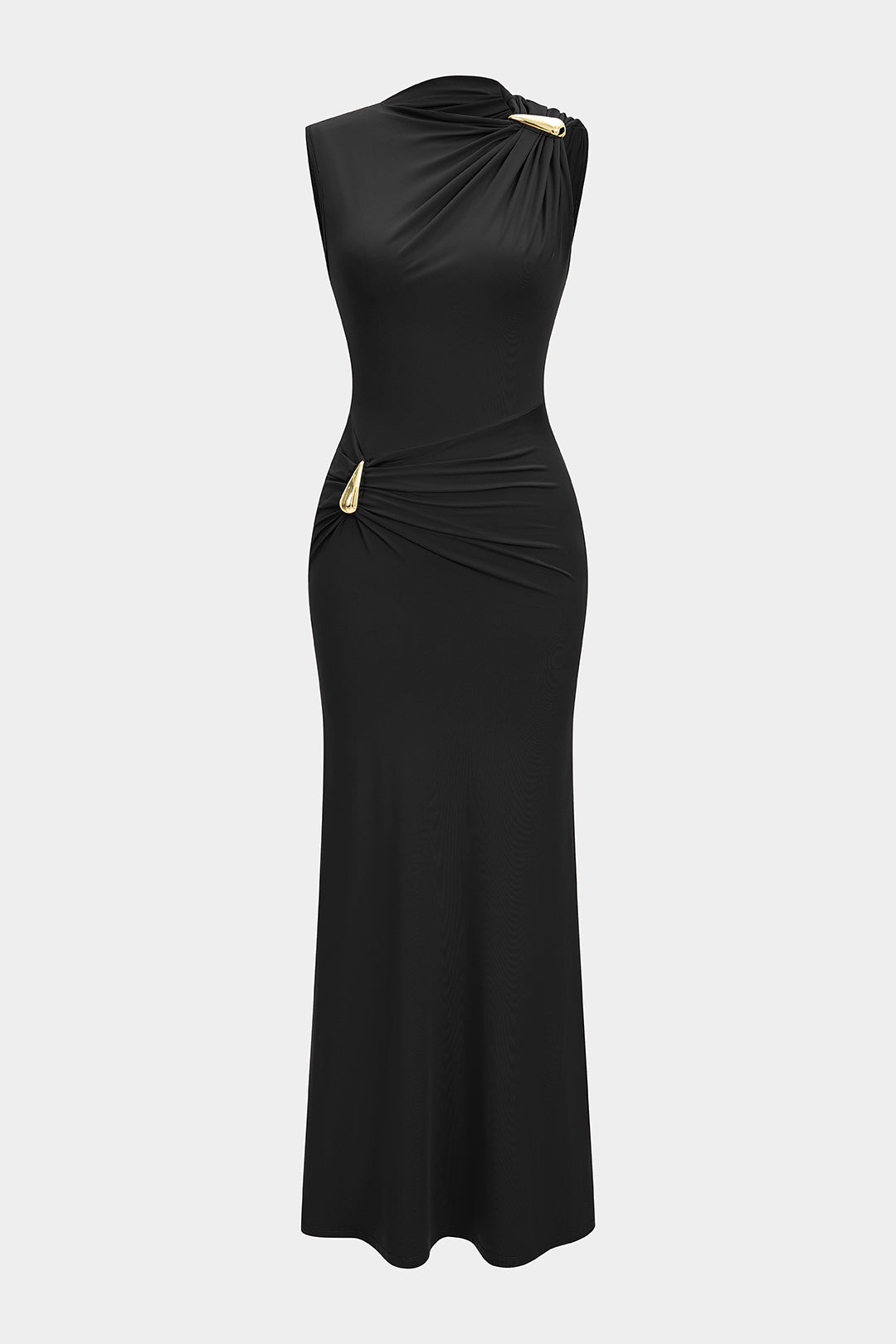 Metallic Decor Ruched Sleeveless Maxi Dress