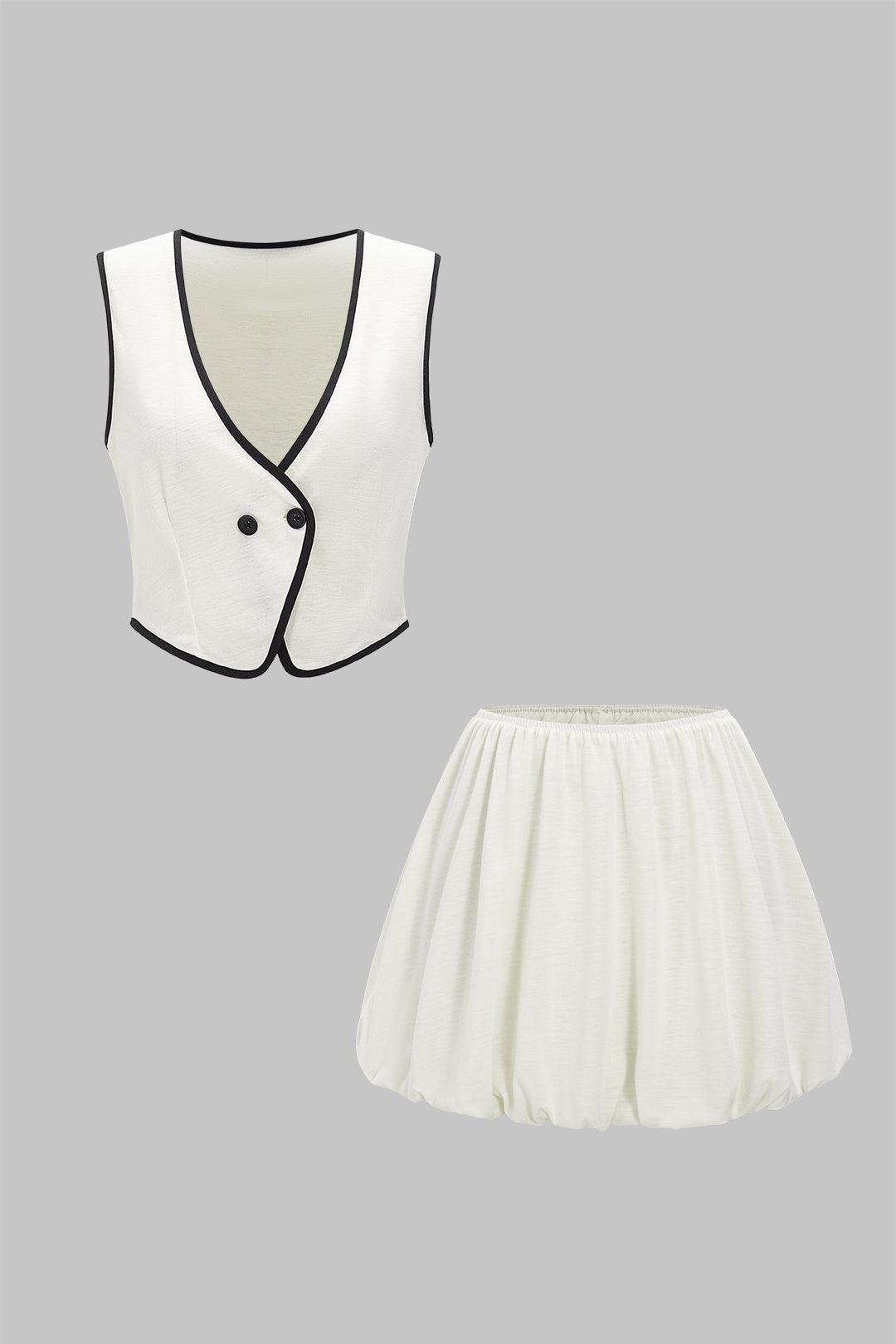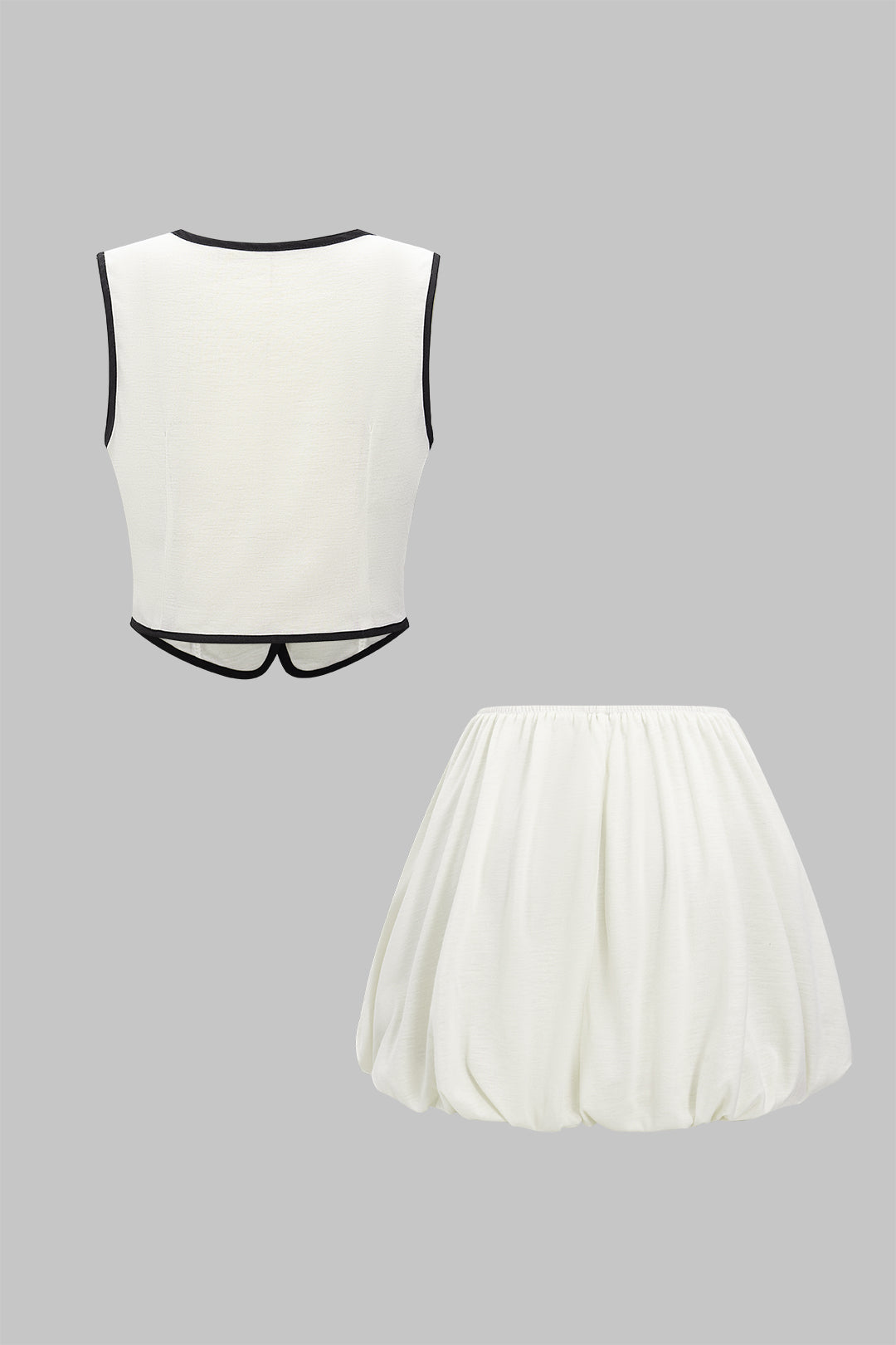 Pellavakontrastin hihaton V-kaula-tankin yläosa ja ruched hame -sarja