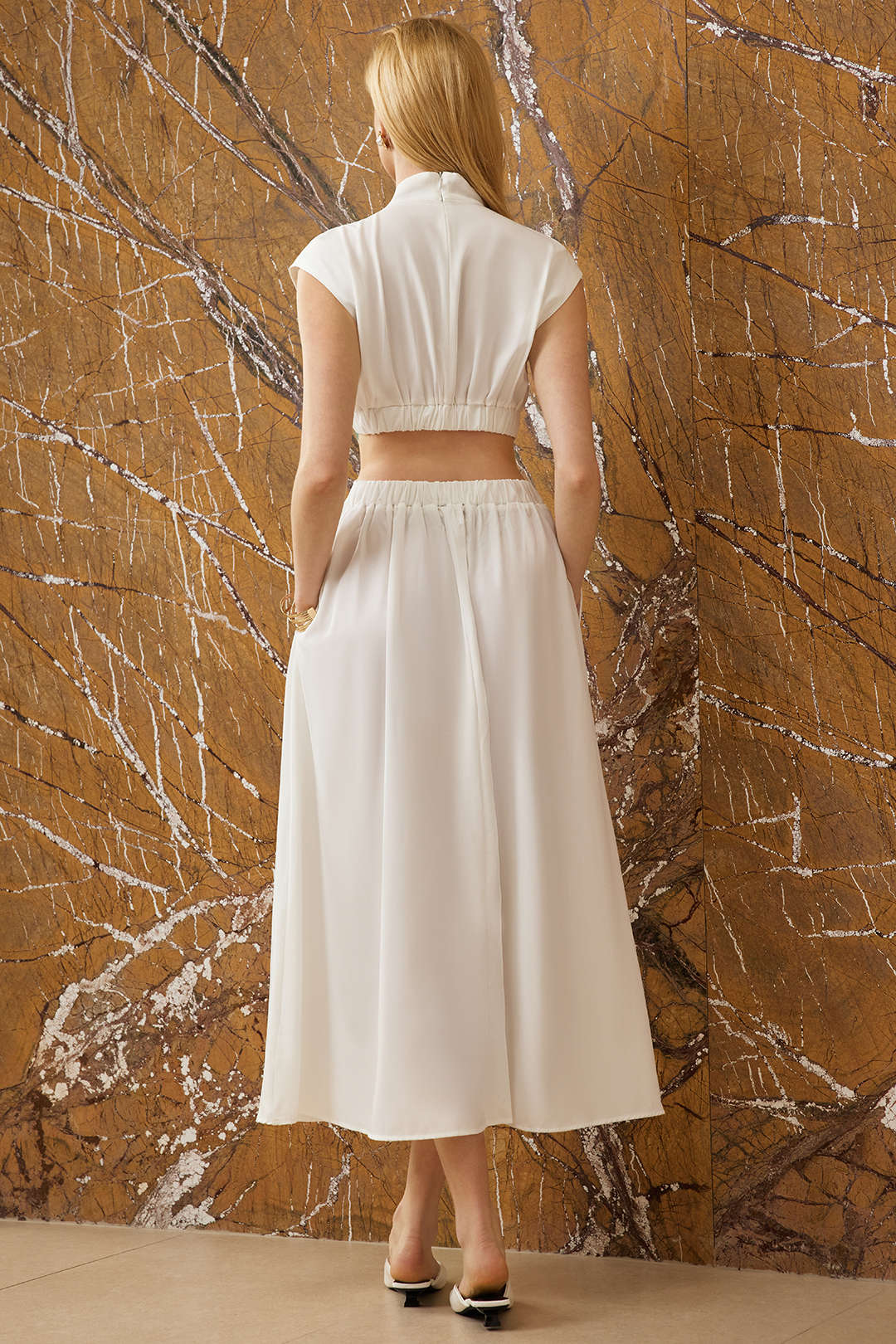 Pilkkaa kaulan leikattu laskostettu maxi -mekko
