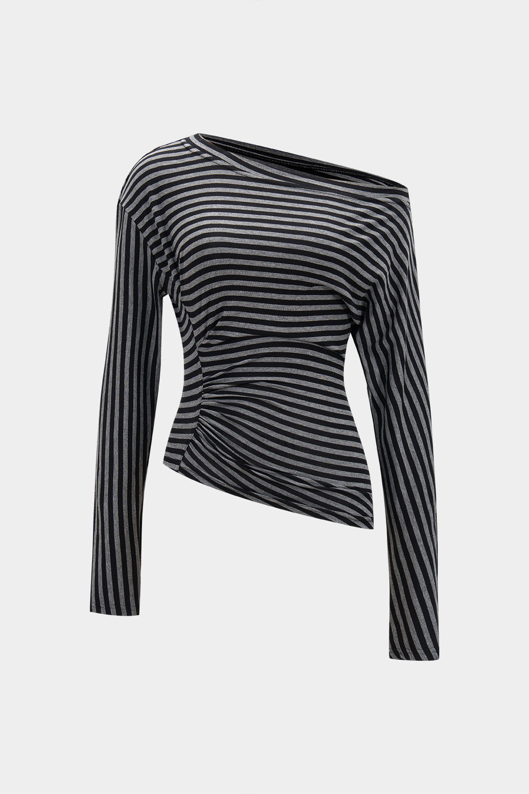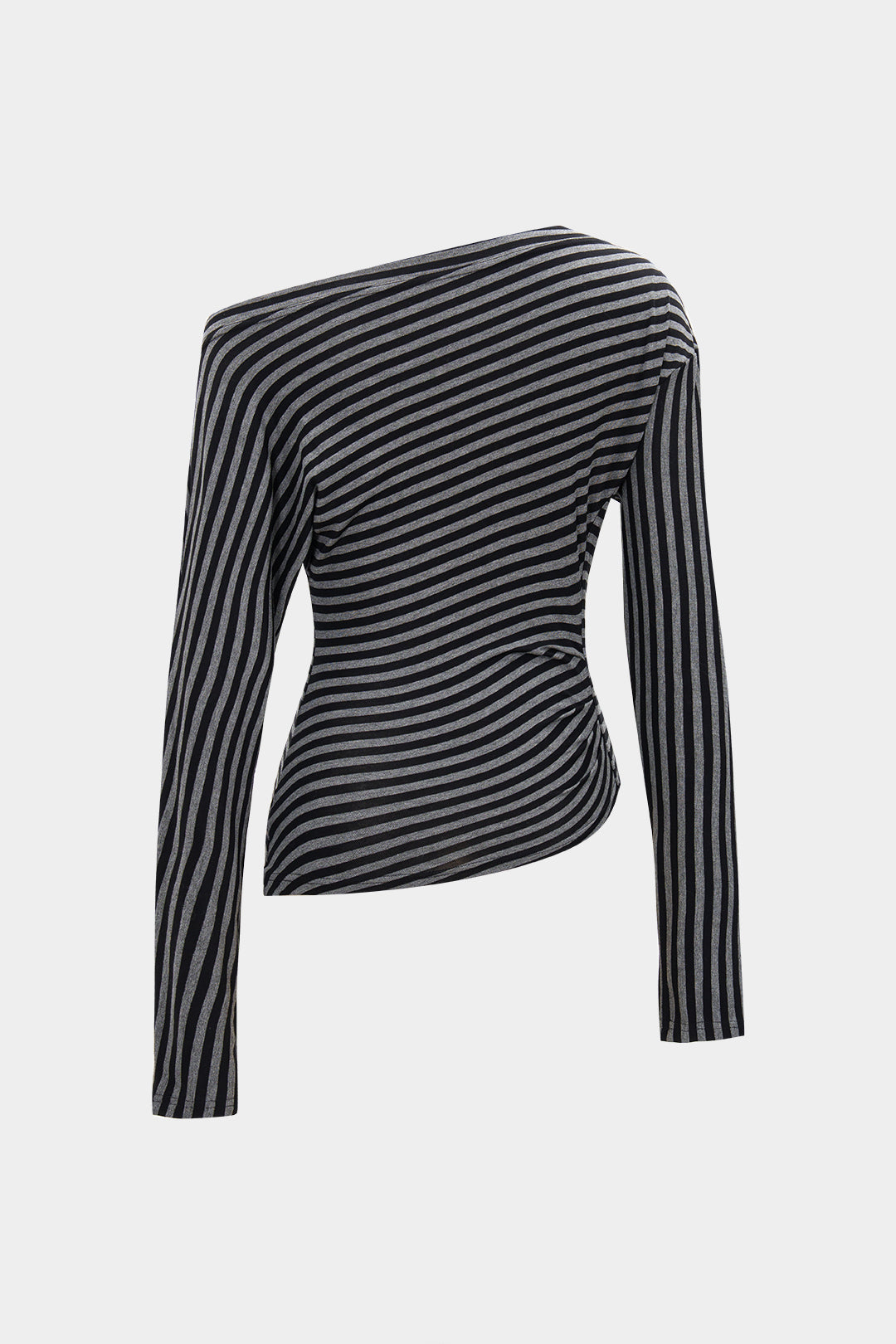 Stripes Print Ruched Asymmetric Long-Sleeve Top