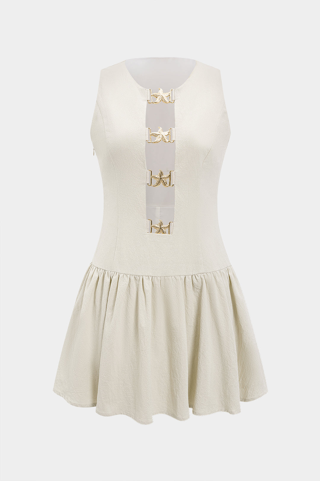 Pellavametallinen sisustus leikataan hihaton minipuku