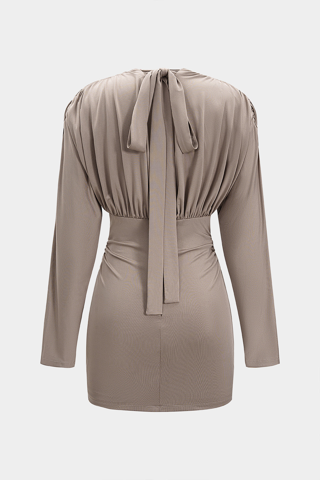 V-Neck Tie Back Ruched Long Sleeve Mini Dress