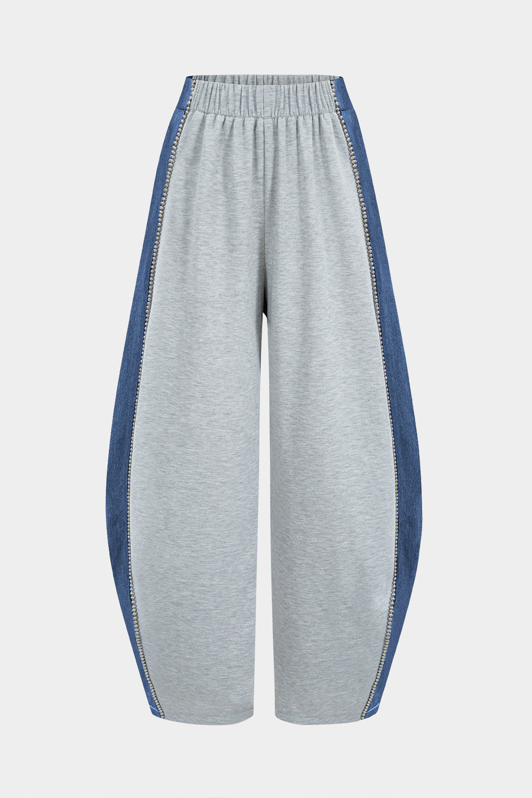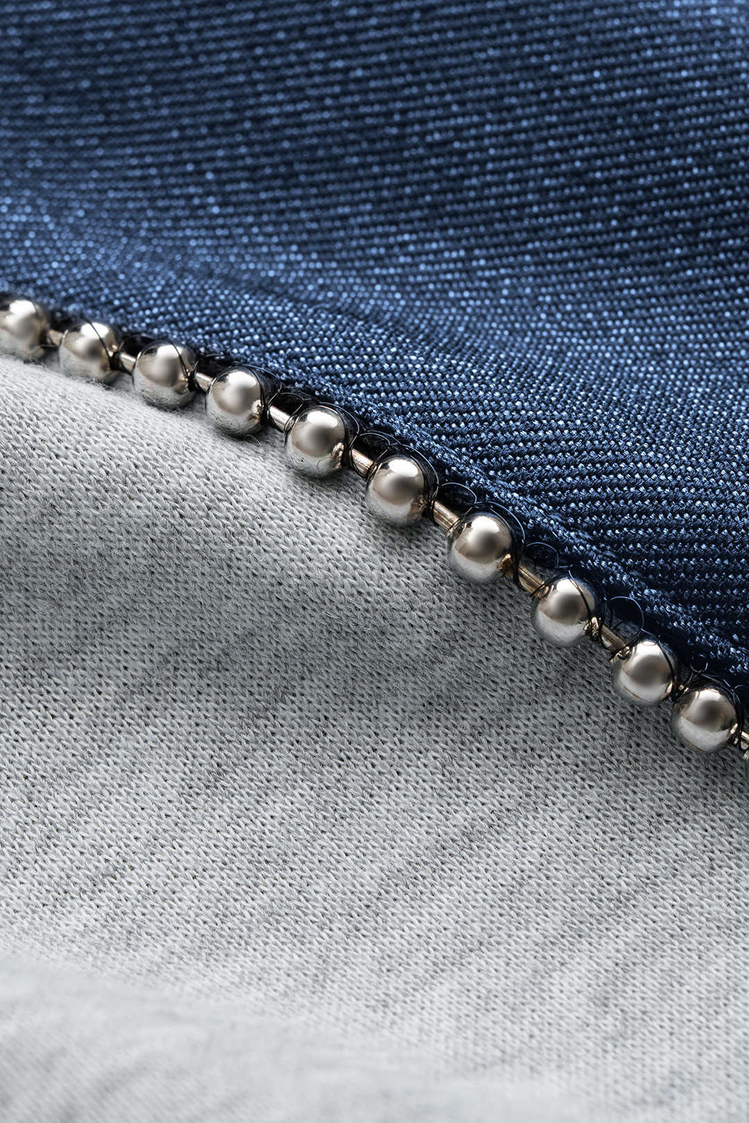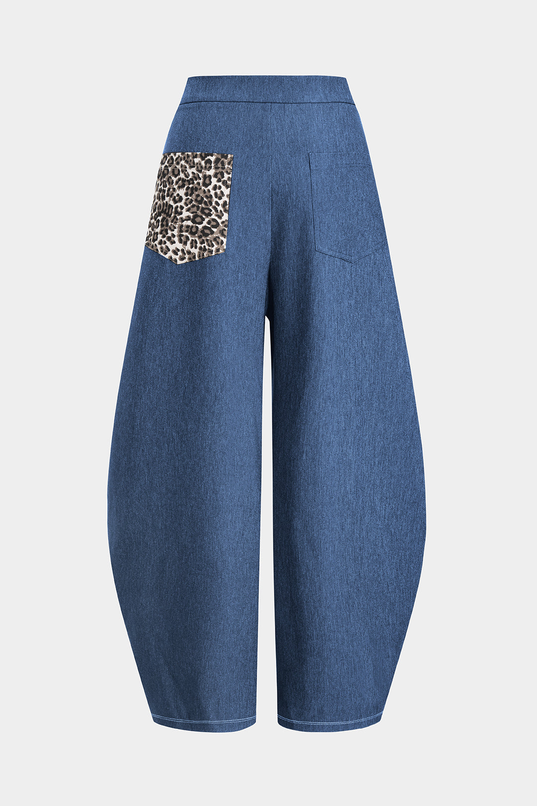 Leopard Print Denim Patchwork Beaded Pocket Pants